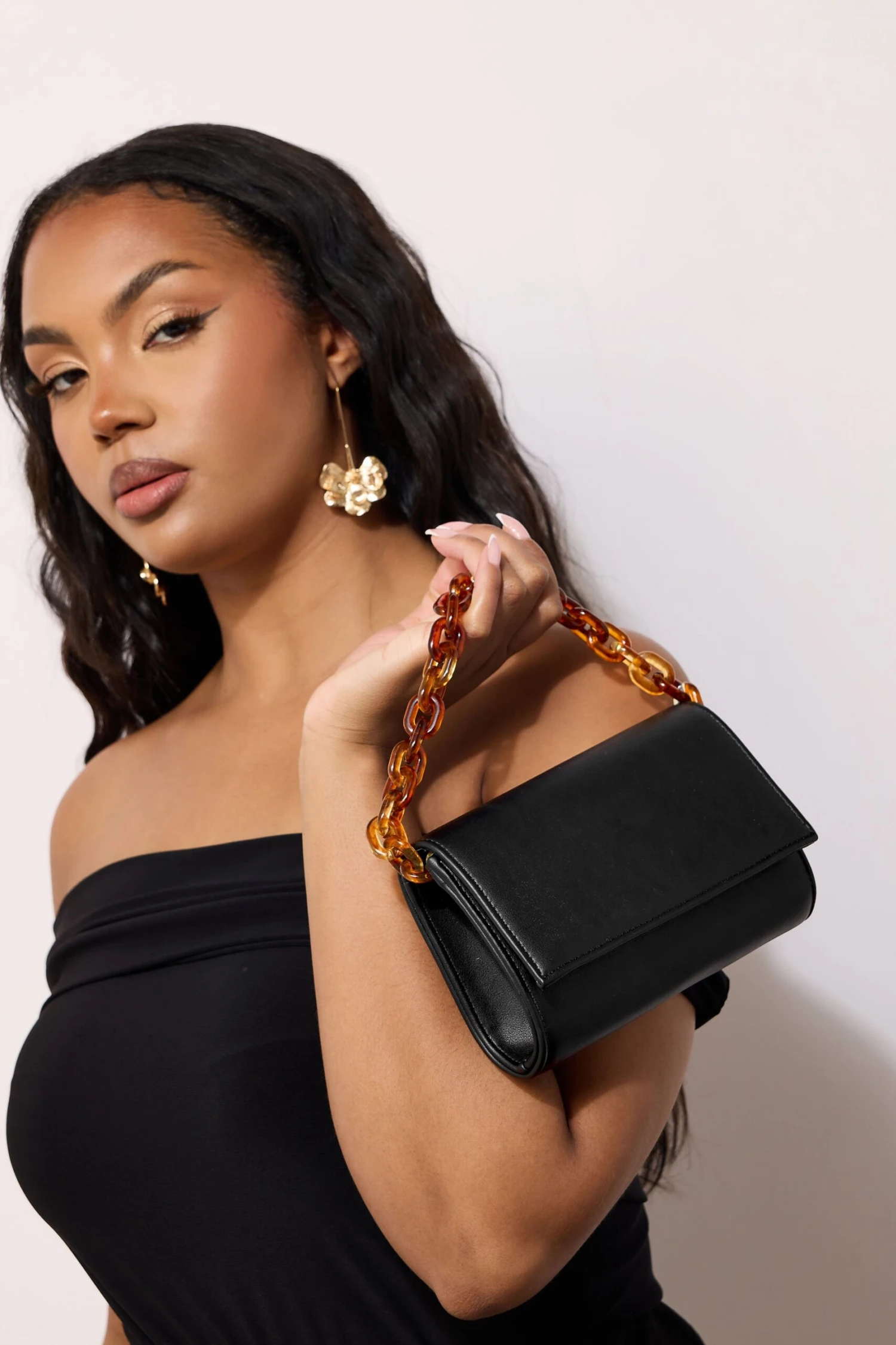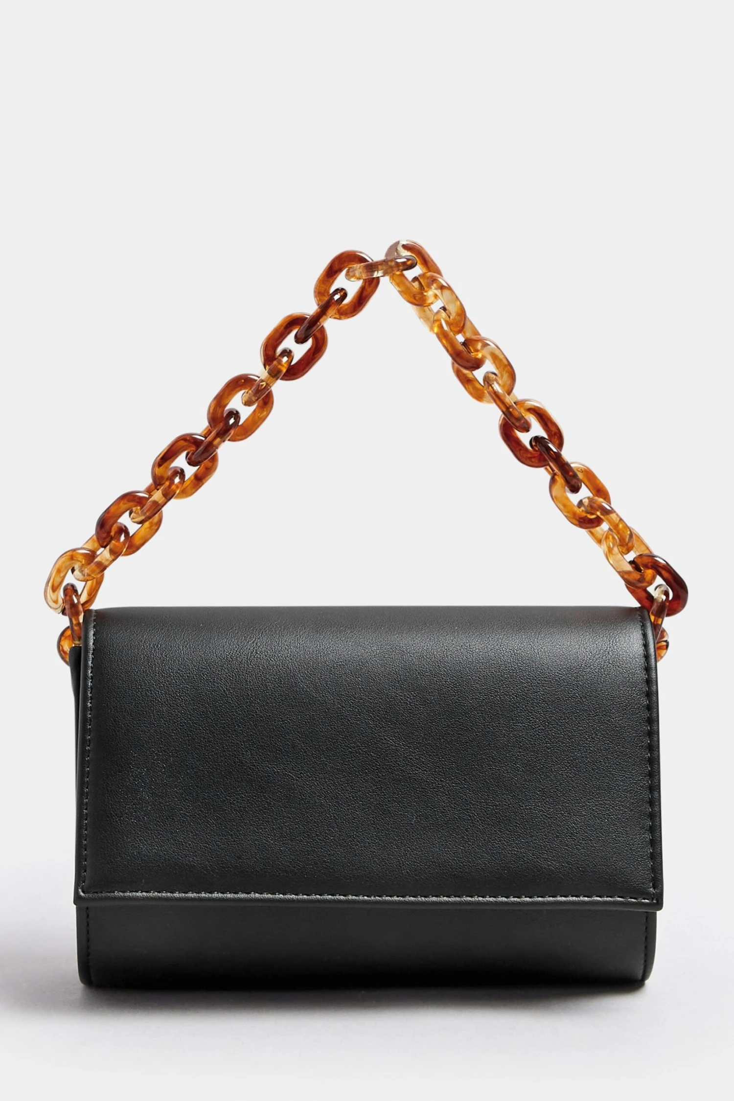 Faux leather finishDouble chain strap designFold over fastening100% polyurethaneMade In Chine
