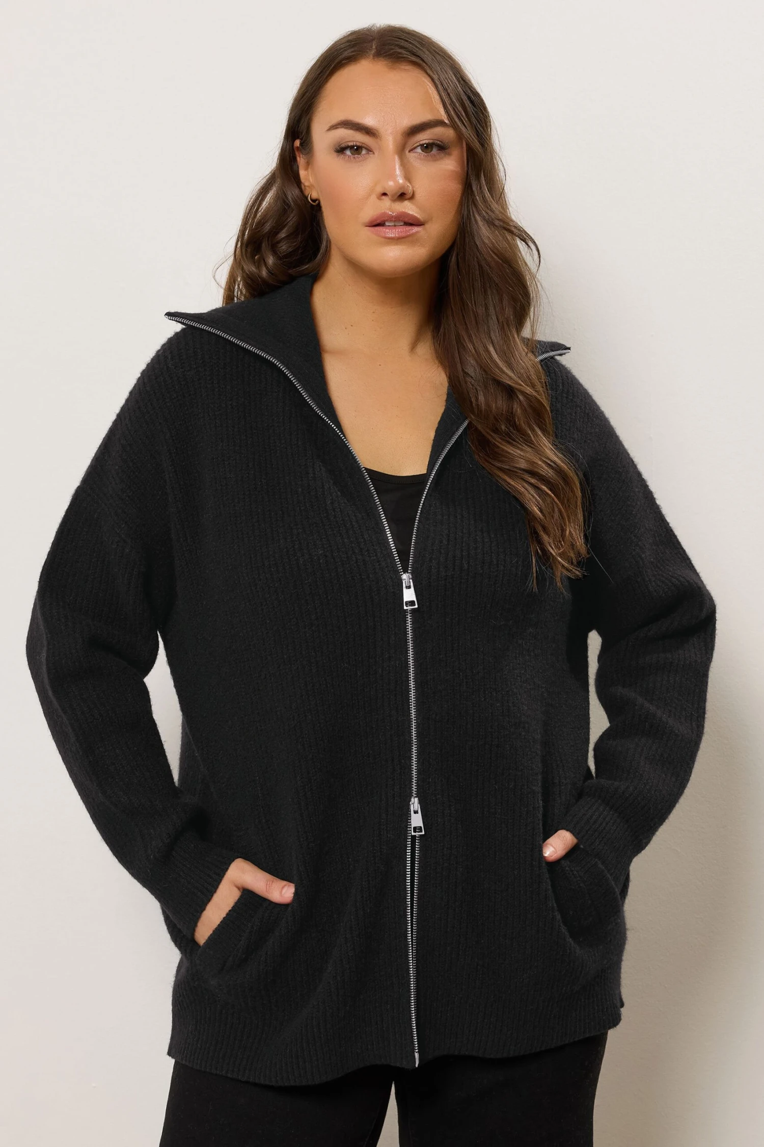 Enhance your knitwear collection with this new-in cardigan. Crafted from a soft knit fabric, this cardigan blends comfort and style seamlessly. It features a double-ended zip fastening, an open collar, long raglan sleeves and two side pockets for added functionality. Style with wide leg trousers and trainers for a casual outfit you can wear anywhere.