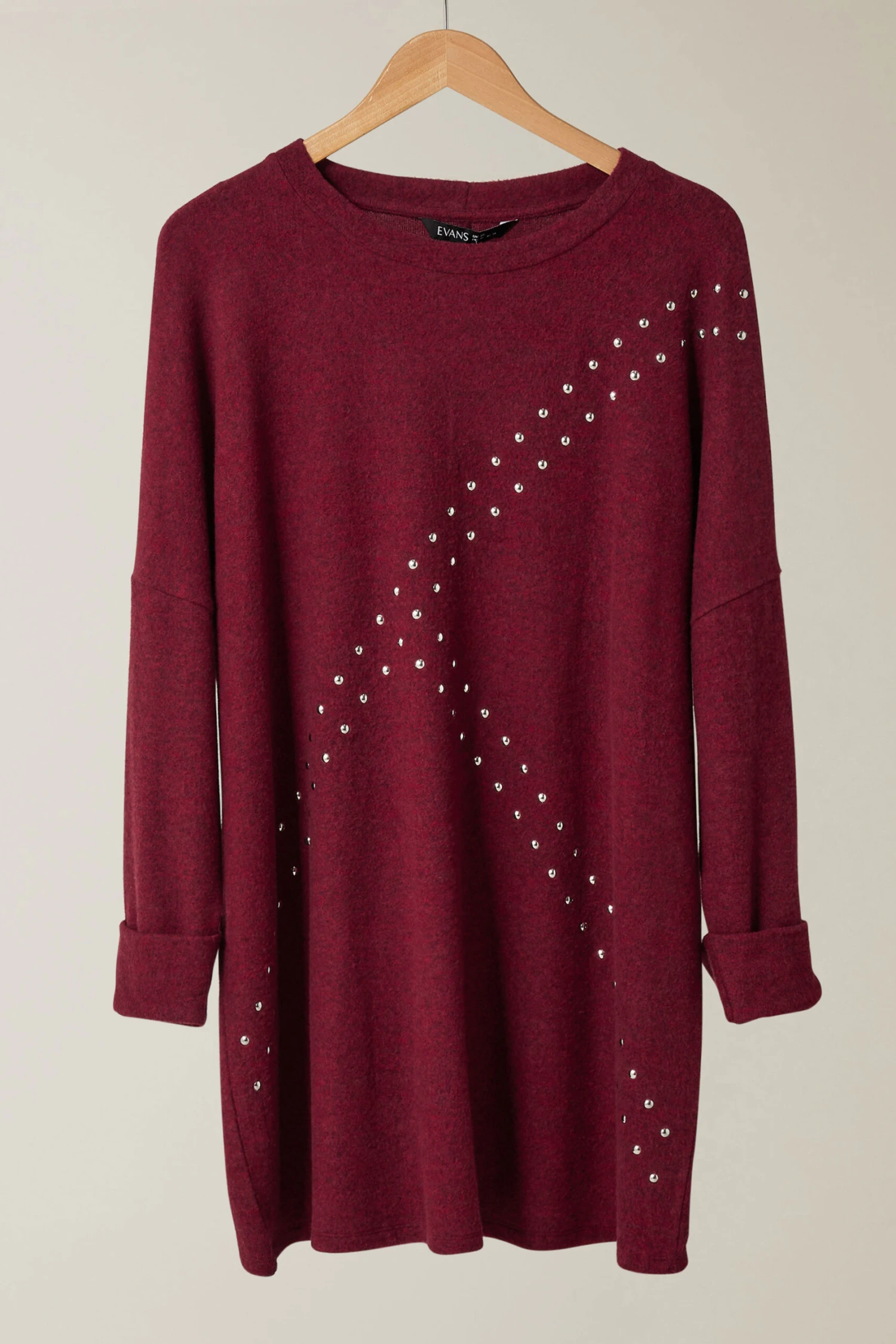 Stud detailingLongline designCrew necklineLong sleevesMade from a soft knitted fabric52% polyester, 46% viscose, 2% elastaneLength from (approx): 78cm/30.7″Machine washableMade In TurquieLe mannequin mesure 5′ 8″ / 173cm et porte du UK 18/EU 46