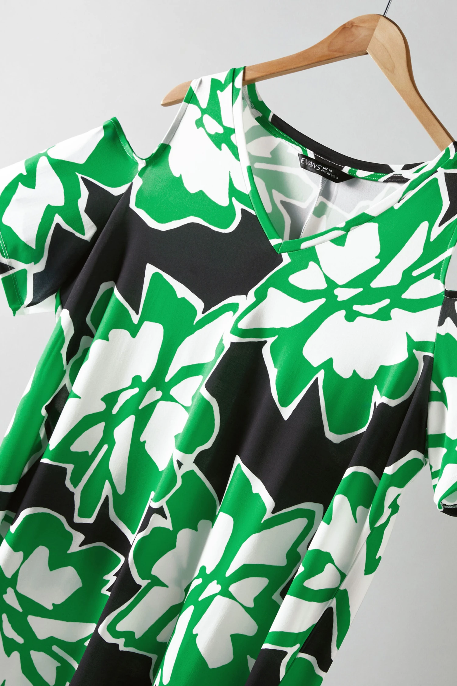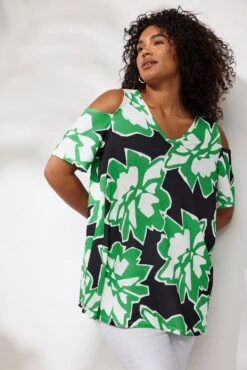 Cold shoulder styleShort sleevesV-neckMade from a stretch jersey fabric98% polyester, 2% elastaneLength from (approx):78cm/30.7″Machine washableMade In TurquieLe mannequin mesure 5’10.5″/178cm et porte du UK 16/EU 44