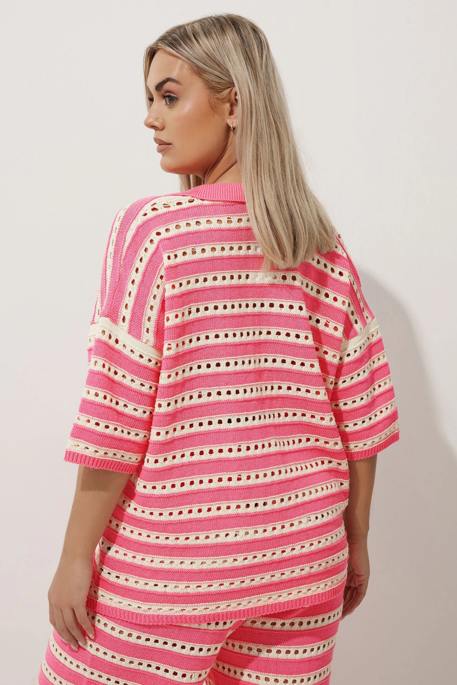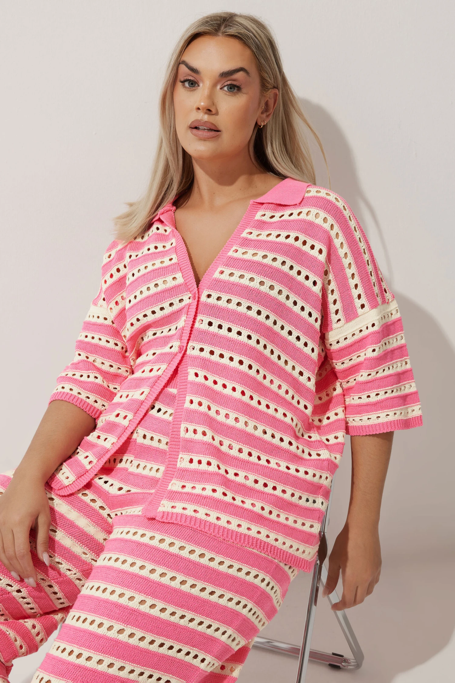 Craquez pour notre chemisier rose et crème crochet. Féminin et cosy, vous ne voudrez plus vous en séparer.