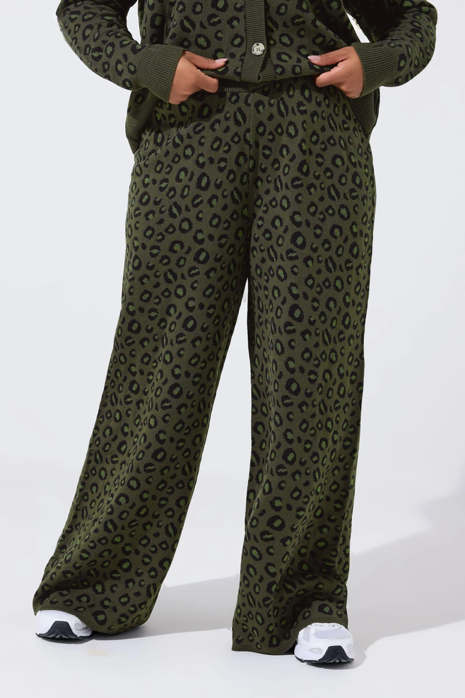 Ce nouveau pantalon allie confort et style. Confectionné en maille douce, il présente un imprimé léopard, une coupe large et une taille élastiquée pour un ajustement parfait. Complétez le look avec le cardigan assorti pour un ensemble tendance que vous porterez toute la saison !