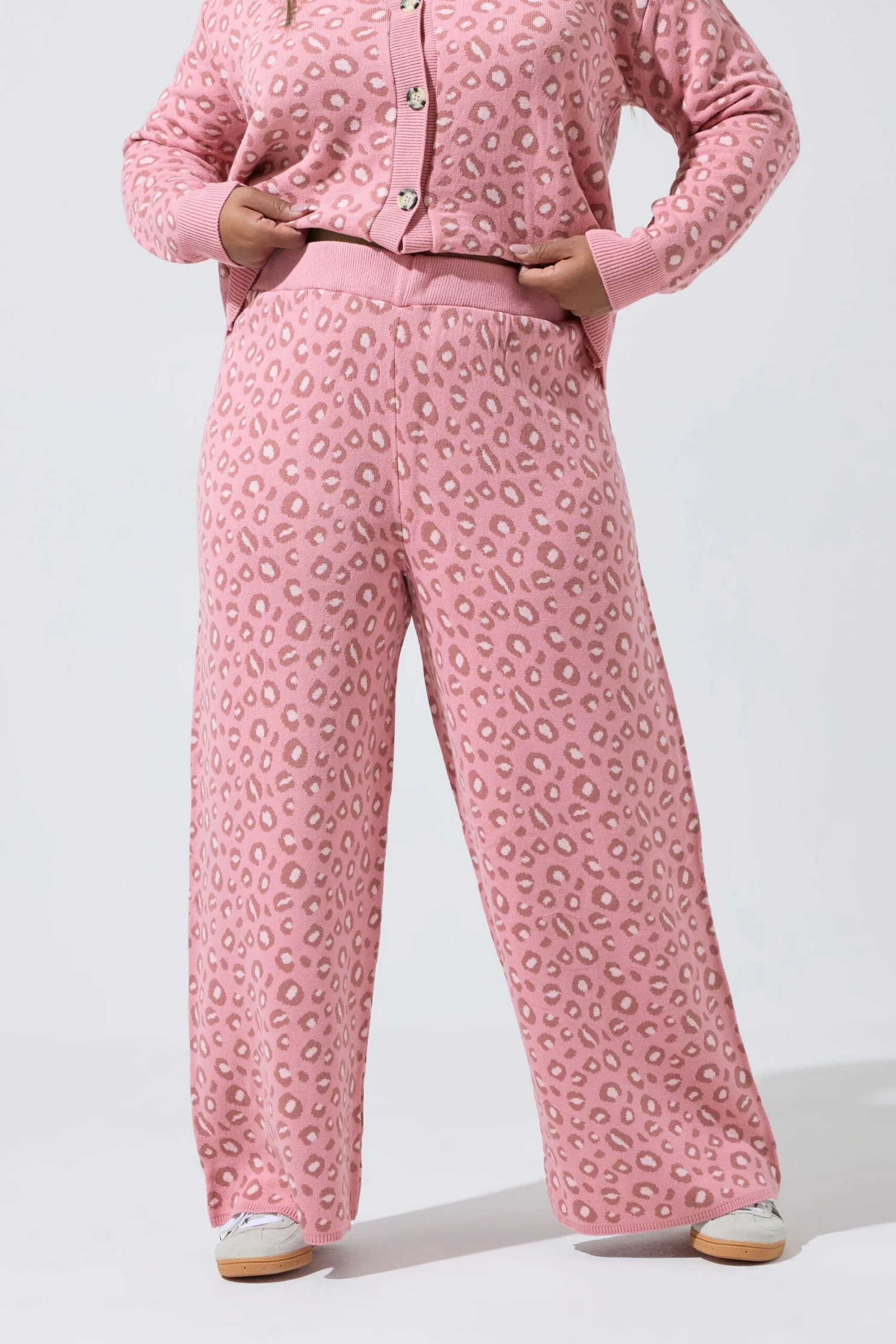 Ce nouveau pantalon allie confort et style. Confectionné en maille douce, il présente un imprimé léopard, une coupe large et une taille élastiquée pour un ajustement parfait. Complétez le look avec le cardigan assorti pour un ensemble tendance que vous porterez toute la saison !