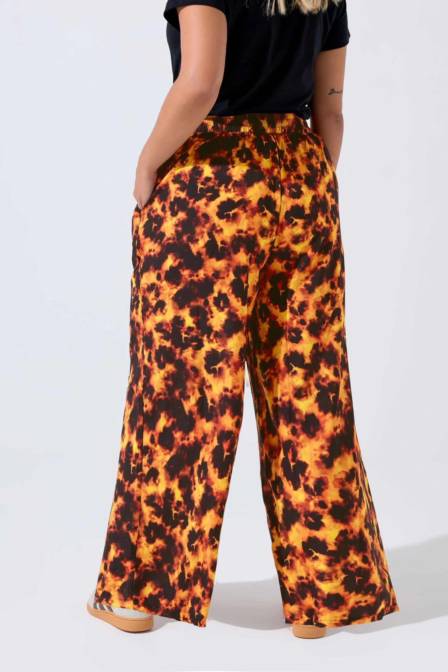 Imprimé écaille de tortueStyle jambe largeCeinture élastiquéeTaille hauteFabriqué dans un tissu tissé respirant100 % polyesterDimensions des coutures intérieures : 68 cm/26,7″Lavable en machineMade In IndeLe mannequin mesure 5′ 9.5″ / 176.53 cm et porte du UK 16/EU 44