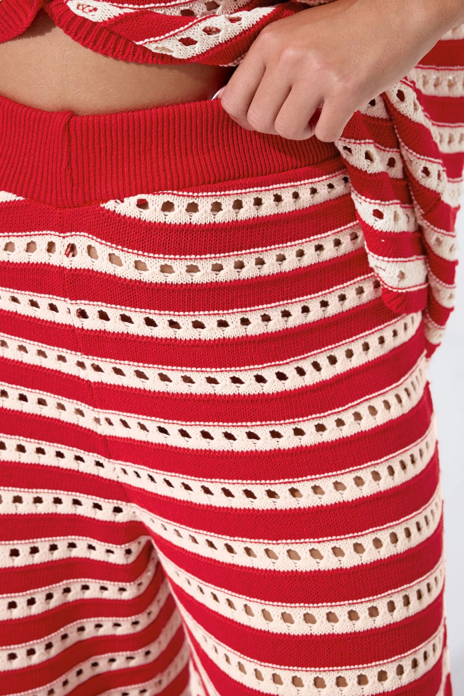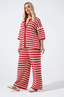 Préparez-vous pour vos prochaines vacances d’été avec ce pantalon au crochet indispensable ! Confectionné en maille respirante, il présente un motif rayé, une taille élastiquée et une coupe large. Associez-le à la chemise assortie pour un look estival auquel vous ne pourrez pas résister !
