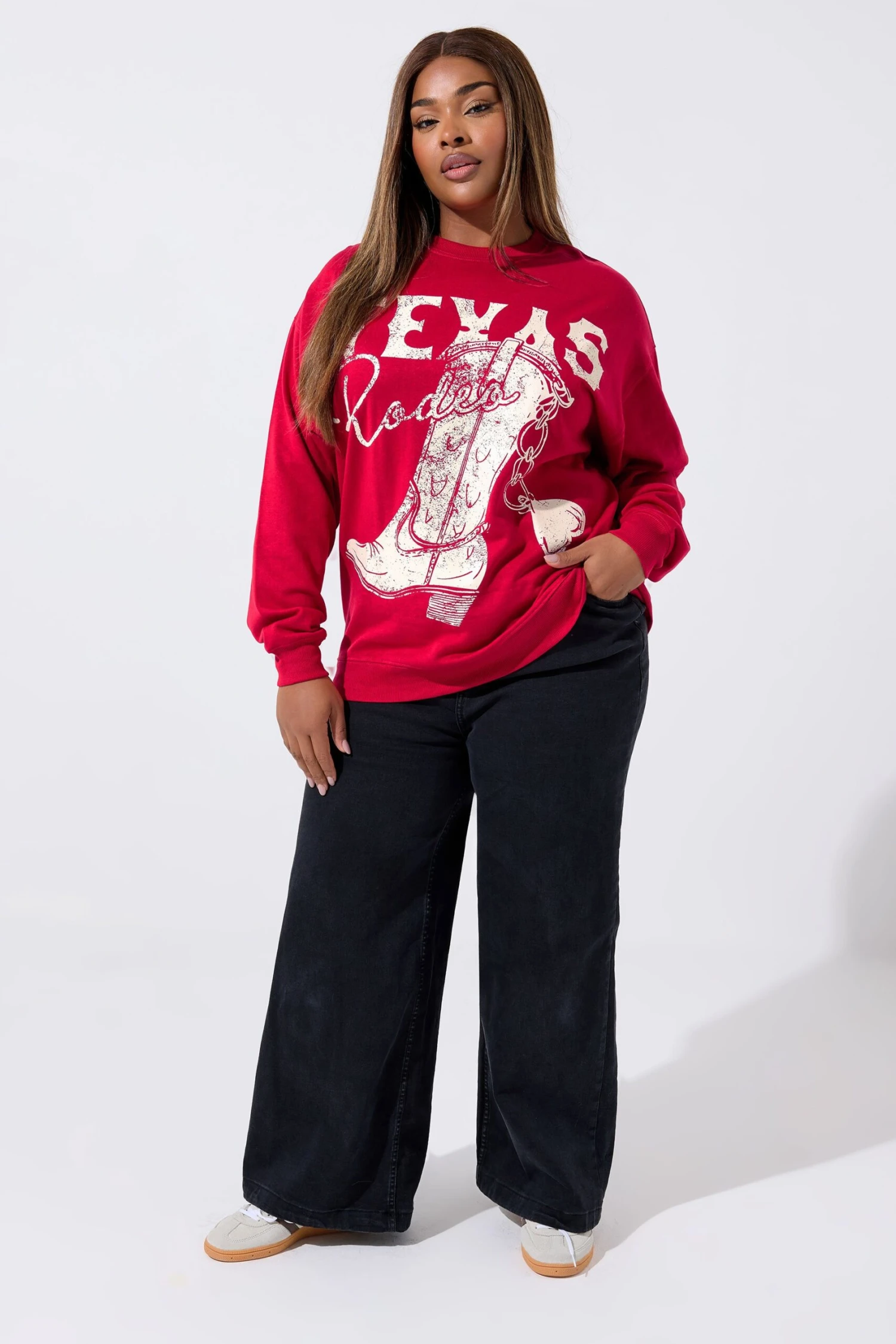 Intégrez un imprimé incontournable à votre garde-robe quotidienne avec ce nouveau sweat-shirt de la LIMITED COLLECTION ! Confectionné en jersey confortable, il arbore le slogan « Texas Rodeo », un imprimé bottes de cowboy graphique, des manches longues et un col ras du cou. Portez-le avec un jean et des baskets pour un look décontracté et tendance que vous adorerez !