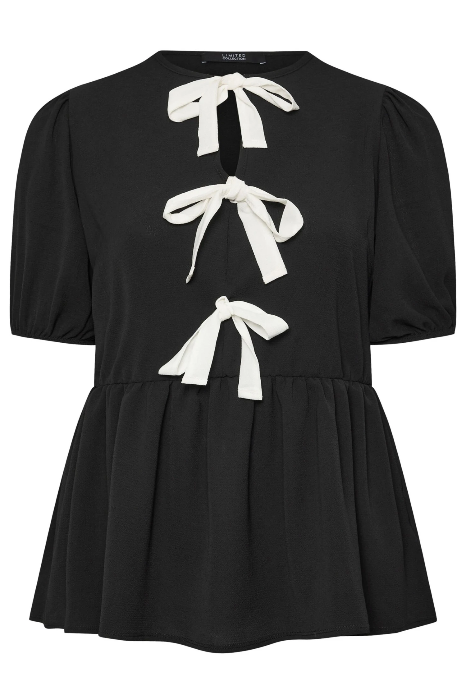Faites le plein de pièces essentielles de saison avec notre top noir design volanté et noeuds. Féminin et tendance, vous pourrez le porter en plusieurs styles.
