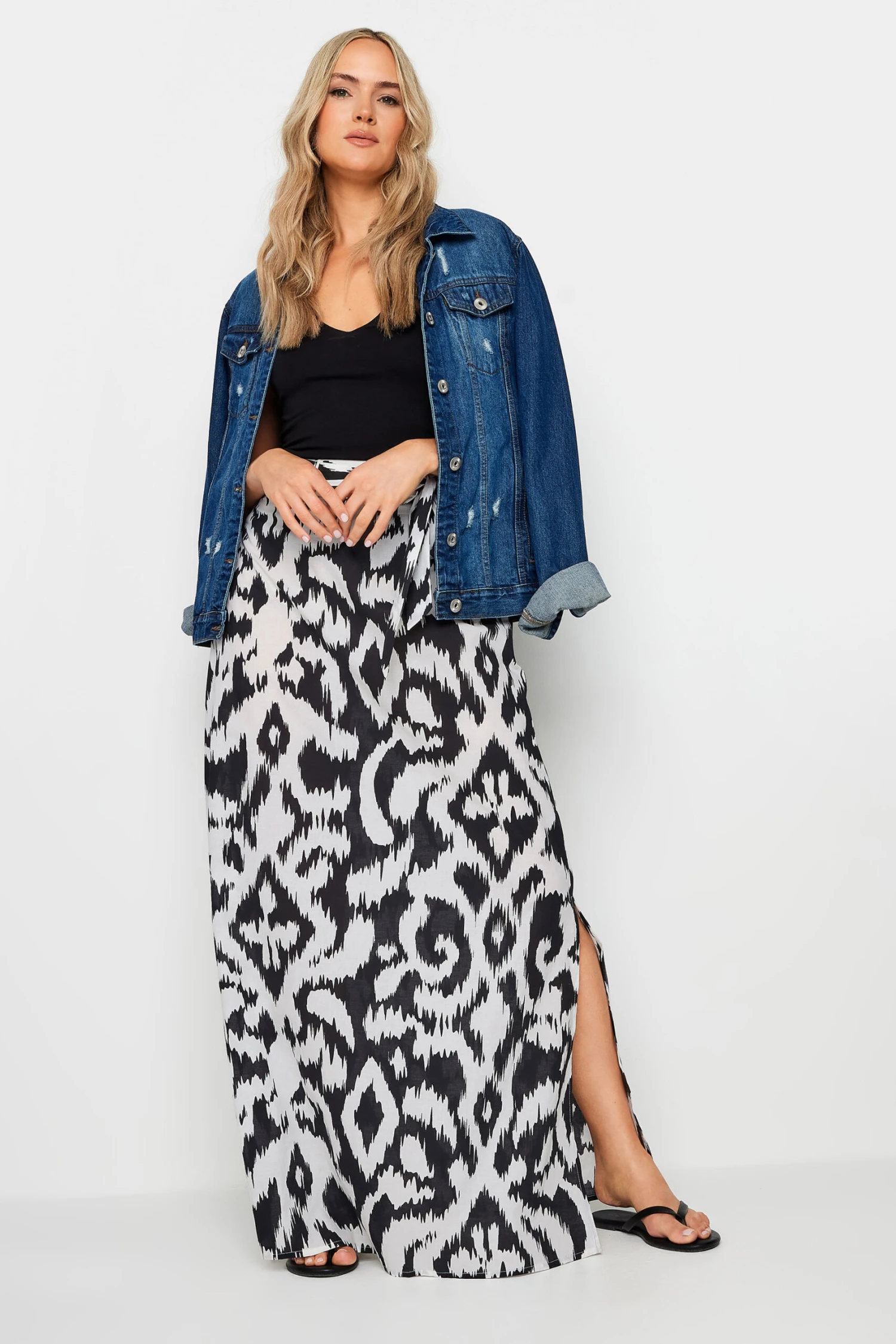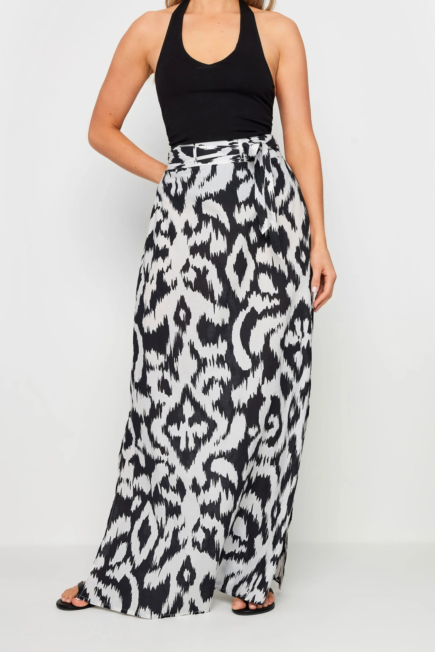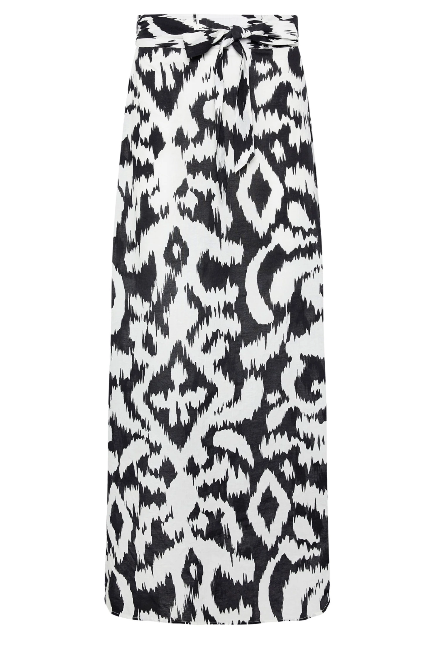 Introduce this must-have monochromatic maxi skirt to your new season wardrobe. Made from 100% cotton for your comfort , this skirt features an abstract print, a tie belt fastening, a side split detail and is complete at a maxi length. Perfect to style with a cami top and your favourite sandals this summer.