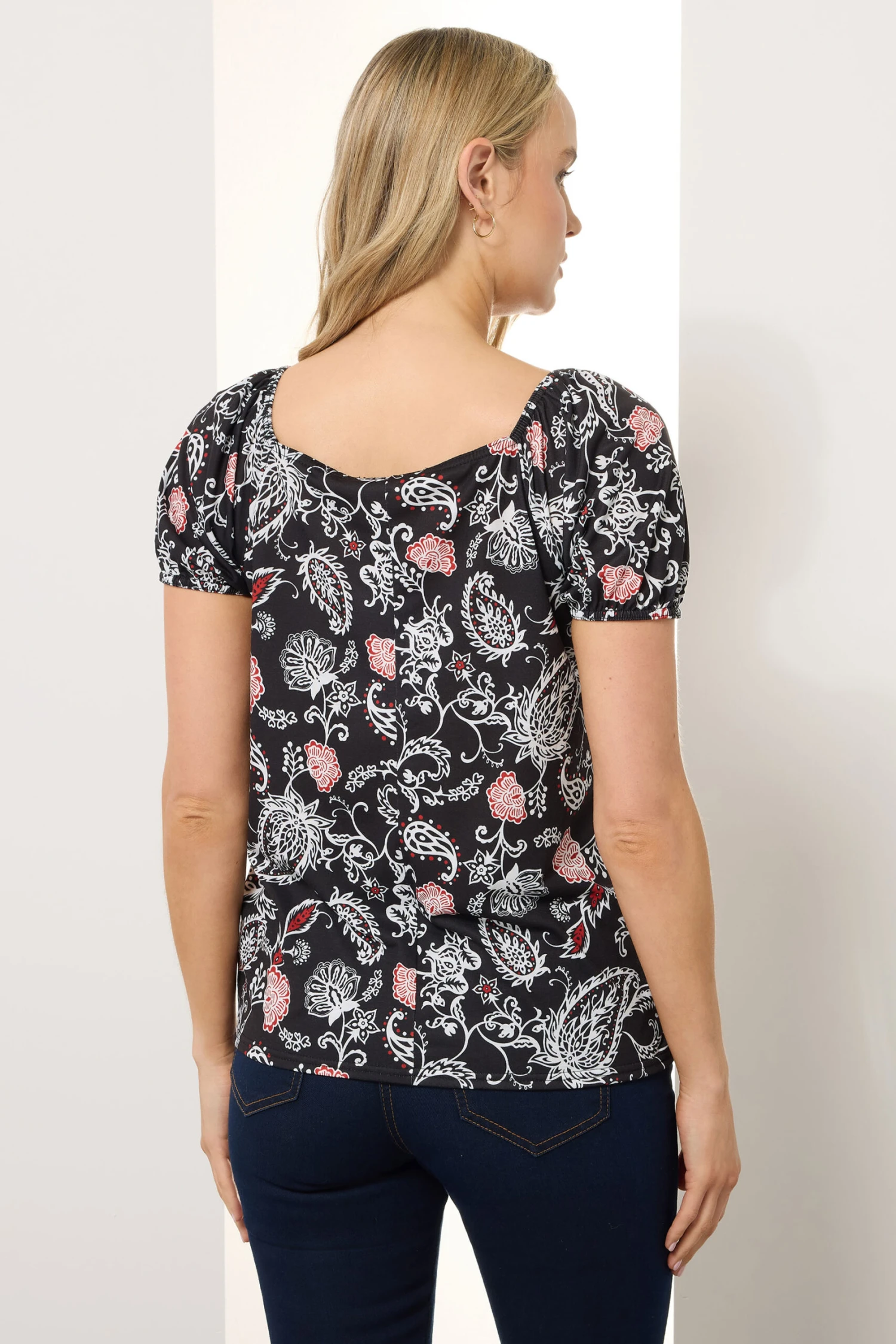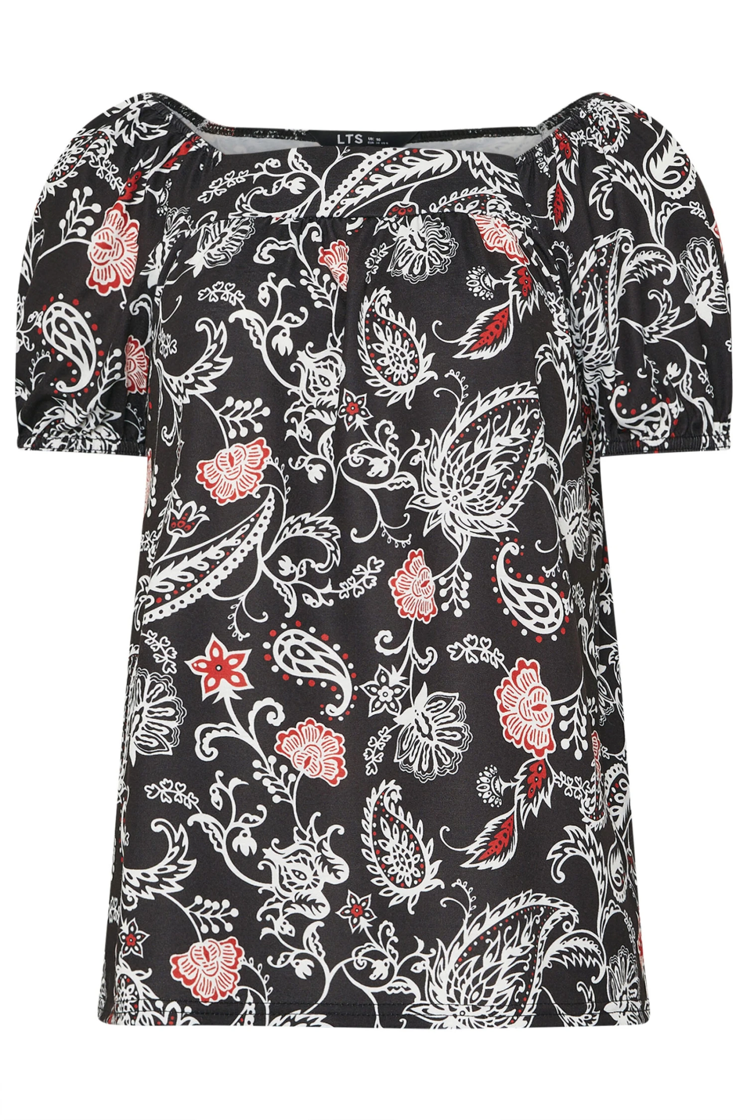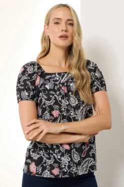 LTS Tall Black Paisley Square Neck Top