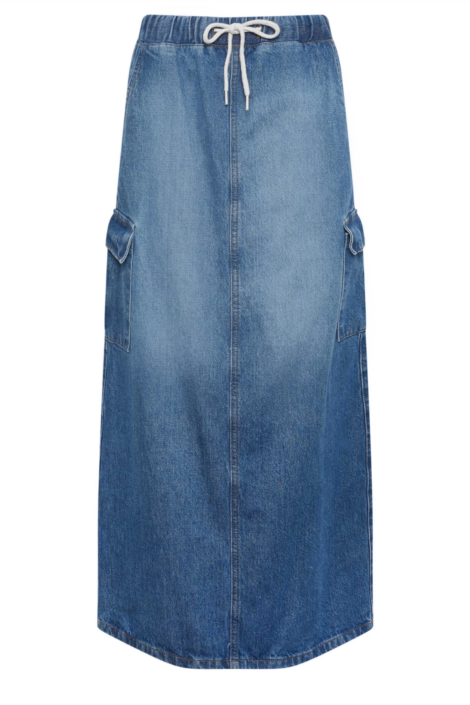 Upgrade your new season wardrobe with this new-in denim skirt. Made from a comfortable denim fabric, it features a drawstring tie waist and cargo pockets, complete in a maxi length. Style with a t-shirt and trainers for an on-trend look, perfect for the season ahead.