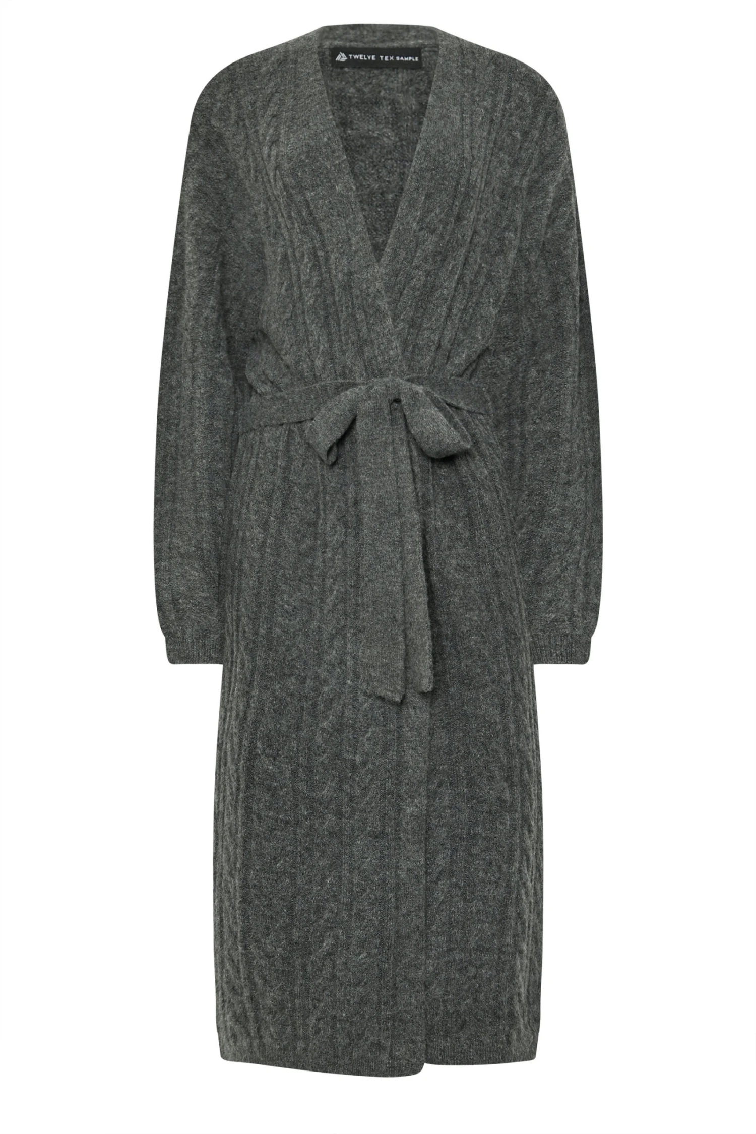Cable knitMidi lengthBelt tieMade from a soft knit fabric74% acrylic, 24% polyester, 2% elastaneLength from (approx): 117cm/46″Machine washableMade In BangladeshLe mannequin mesure 5’11″/180cm et porte du UK 10/EU 38