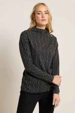 Funnel necklineCable knit textureLong sleeveMade from a soft knit fabric85% polyester, 12% viscose, 3% elastaneLength from (approx): 26.5″Machine washableMade In Grande BretagneLe mannequin mesure 5’11″/180cm et porte du UK 10/EU 38