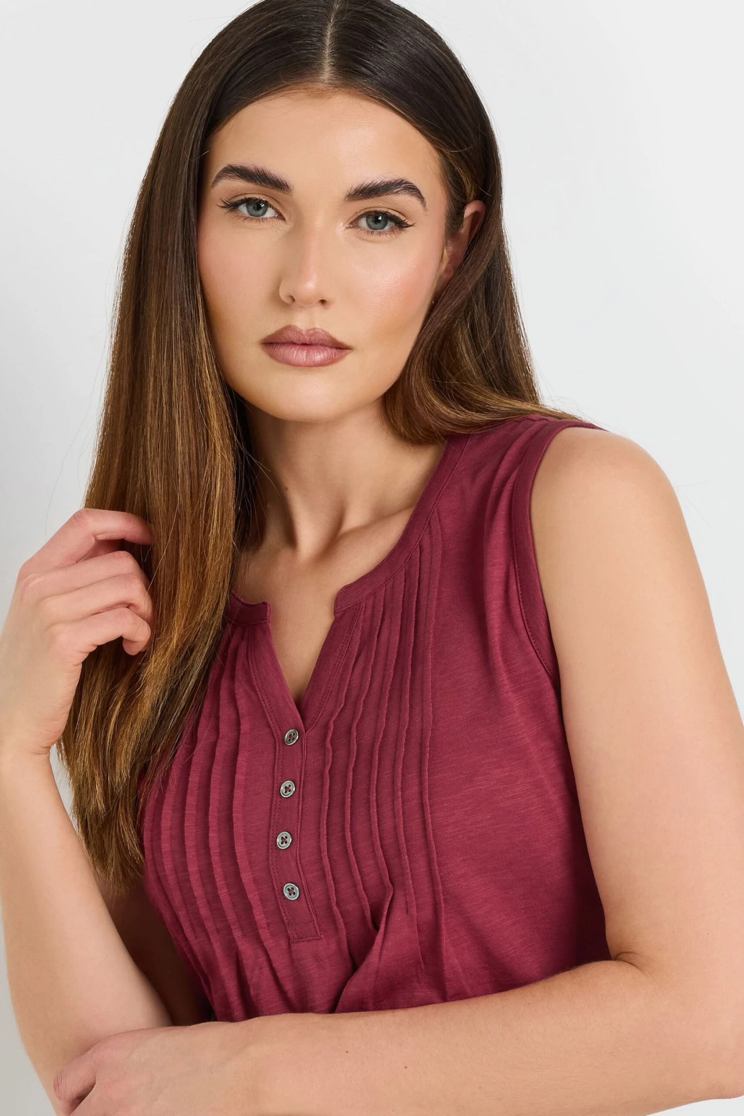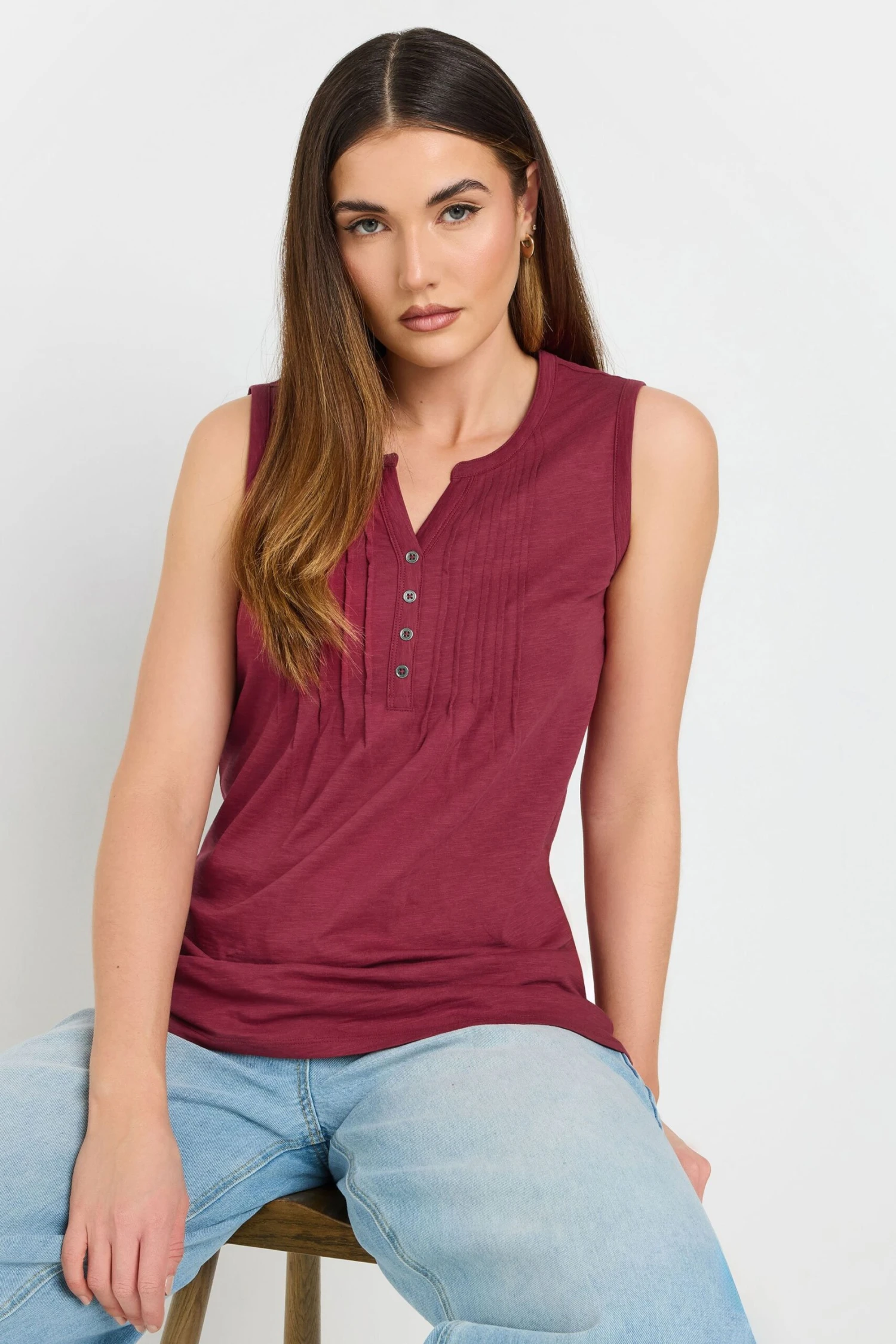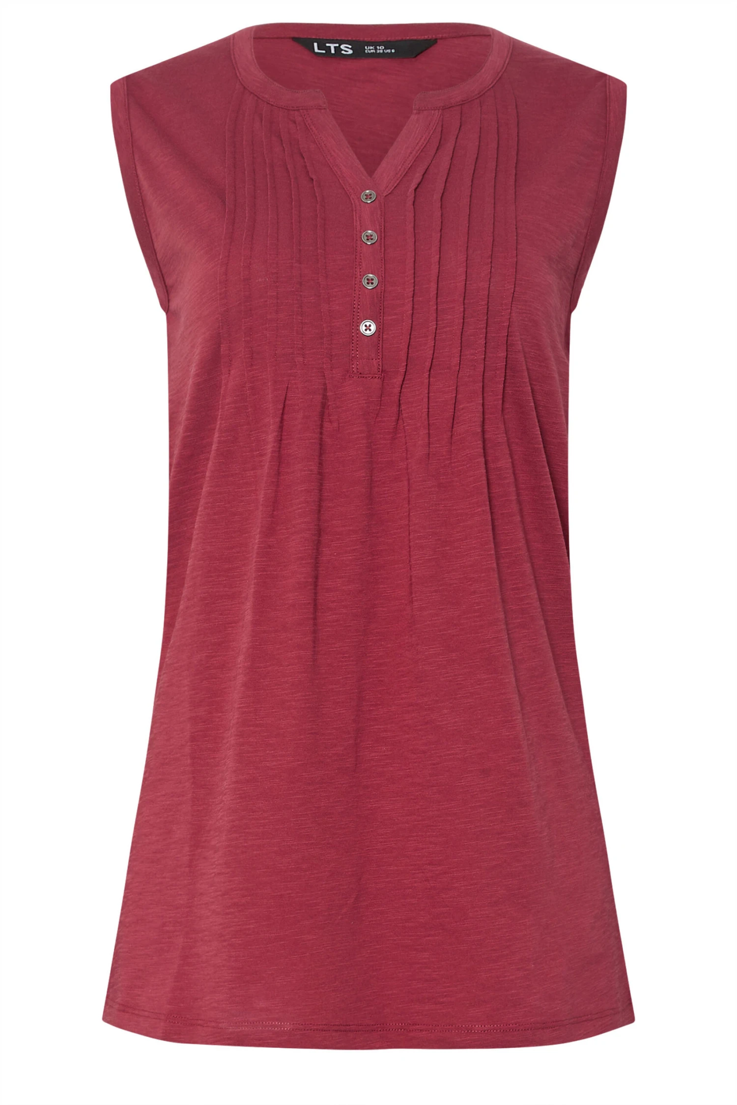 LTS Tall Dark Red Cotton Henley Vest Top