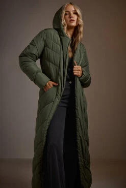 Hooded stylePadded designZipper fasteningTwo side pocketsMaxi lengthMade from a durable woven fabric100% polyesterLength from (approx): 140cm/55.1″Machine washableMade In ChineLe mannequin mesure 5’10.5″/179cm et porte du UK 10/EU 38