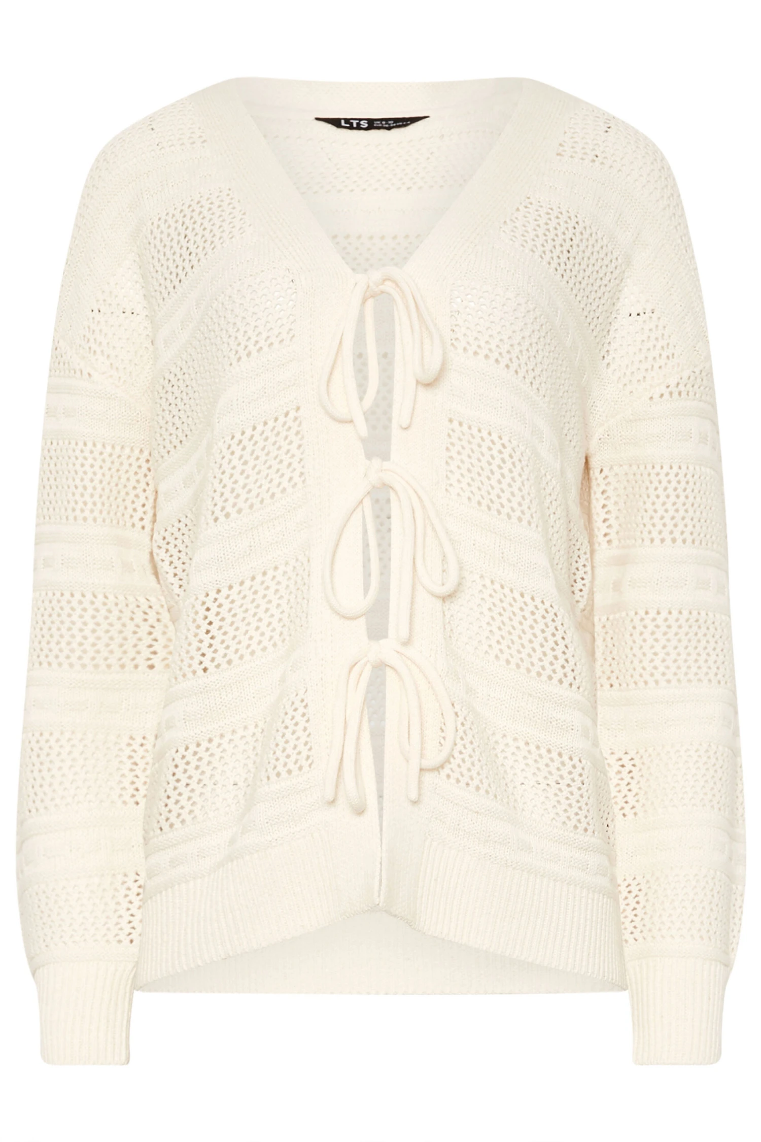 Add more summery layers into your wardrobe this season with this tie front cardigan. Made from soft knit fabric, it features long sleeves, tie front detailing and is complete in a knitted pattern. Wear over a maxi dress and heels for when the chillier evenings approach!