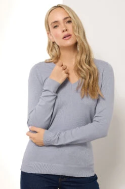 LTS Tall Light Blue Knit V-Neck Jumper