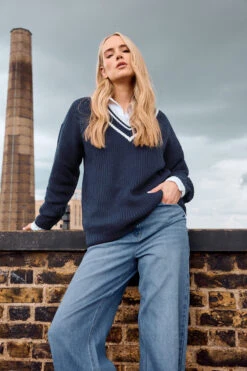 Contrast v-necklineLong sleeveMade from a soft knitted fabric100% acrylicLength from (approx): 27.5″Machine washableMade In BangladeshLe mannequin mesure 5’11″/180cm et porte du UK 10/EU 38