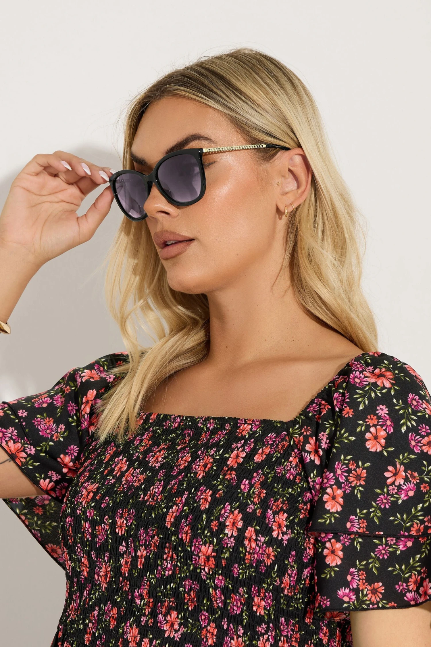 Complétez vos looks favoris de saison avec nos lunettes de soleil noires chaîne dorée.