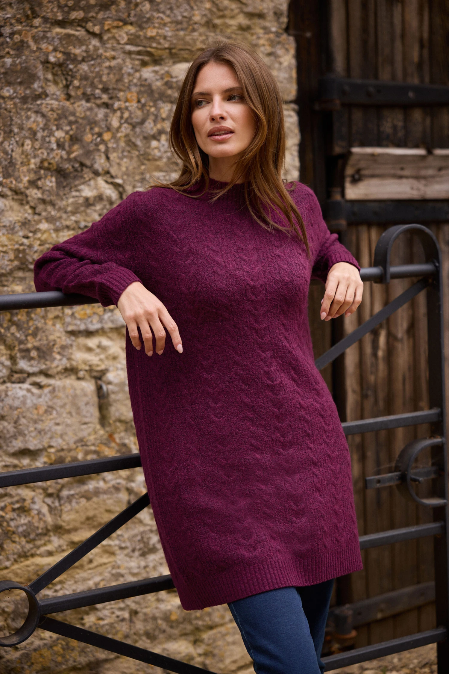 Refresh your knitwear wardrobe with our must-have tunic jumper. Made from a soft knit fabric, it features a tunic style with a cable knit design, a mock neckline, long sleeves and ribbed collar, cuffs and hem. Partner with skinny jeans and boots for a stylish autumn look you can rely on!