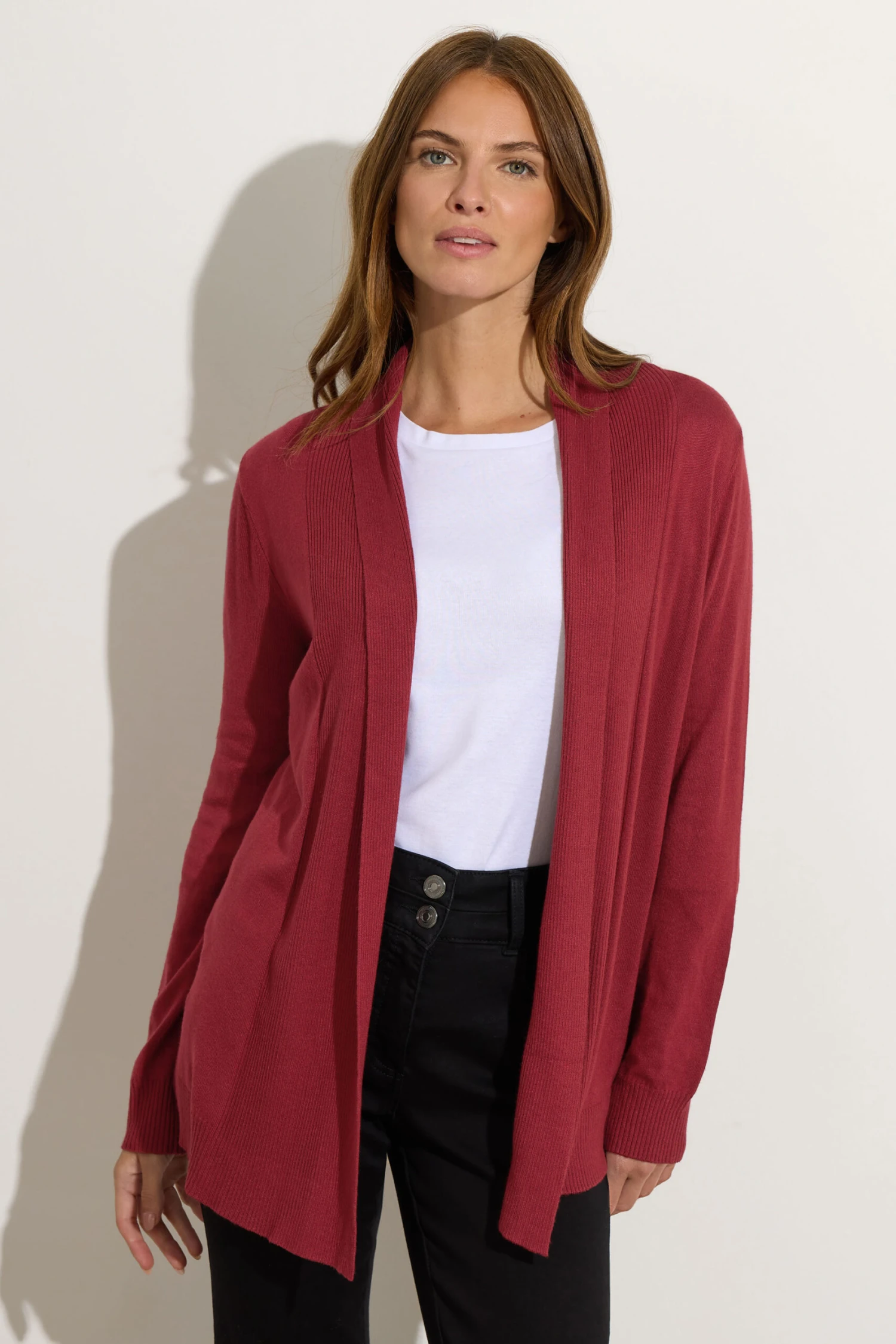 Elevate your daily wardrobe with this newly arrived cardigan. Crafted from soft knit fabric, it features an open front with a shawl collar, ribbed panelling and long sleeves. For the perfect casual look this season, simply layer it over a cami and jeans.