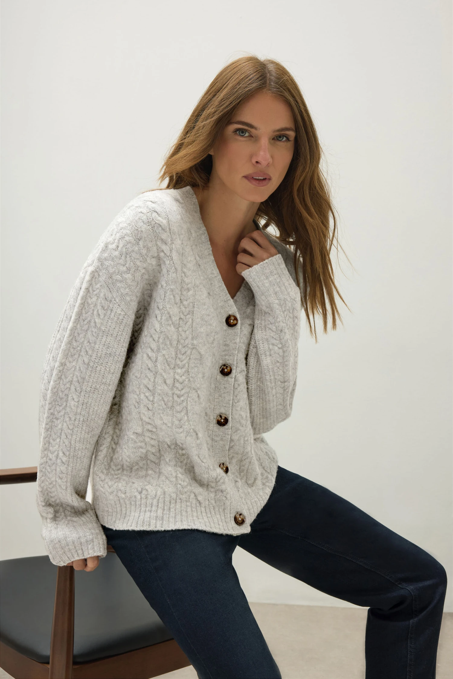 Layer up in style this autumn. Made from a soft cable knit fabric, this cardigan features a v-neckline, value fastenings, cable knit design and long sleeves. Style with denim and a trench coat for a stylish everyday look.