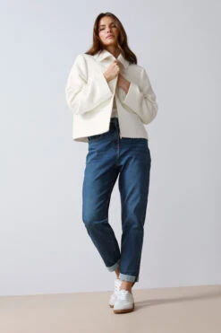 Refresh your denim collection with our new-in jeans. Made from a stretch denim fabric, they feature a mom fit, functional pockets, zip fly and value fastening and turn up hems. Style them with a cardigan and trainers for a comfortable, casual look.