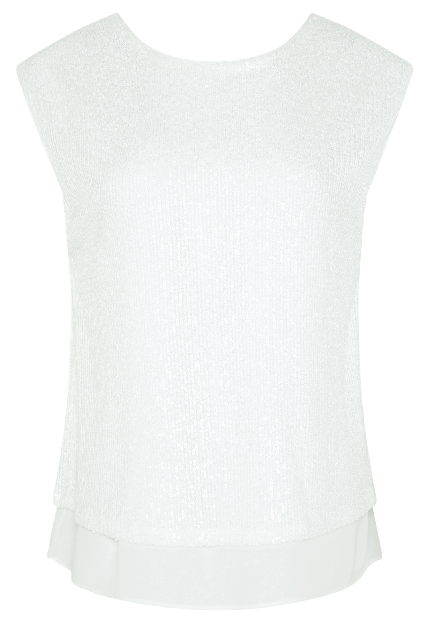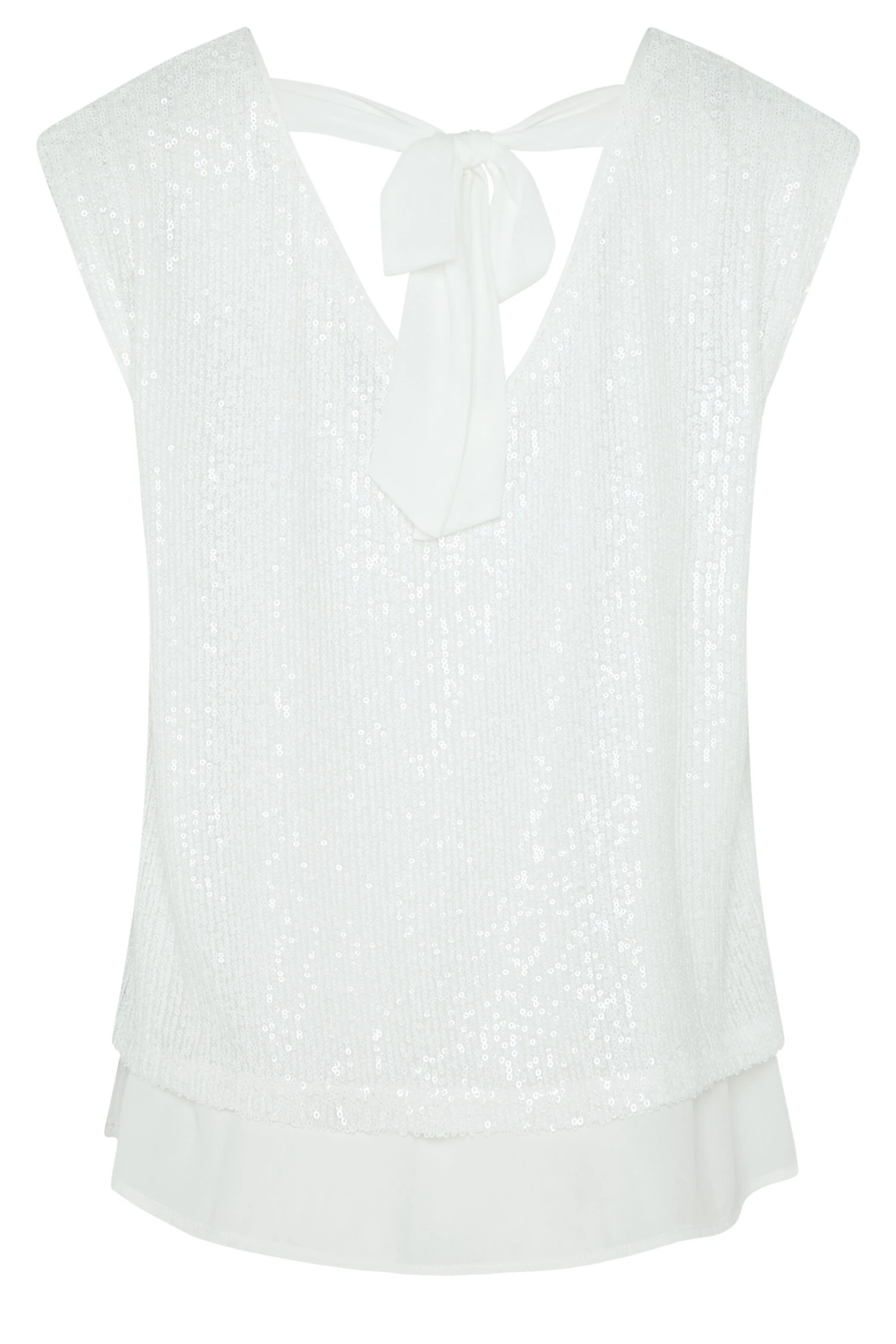 Add some sparkle to your wardrobe with the new sequin blouse. Made from a comfortable woven fabric, this blouse features, a crew neck, sequins, a sleeveless look, and a tie back. Style with trousers and heels to complete this fashionable look.