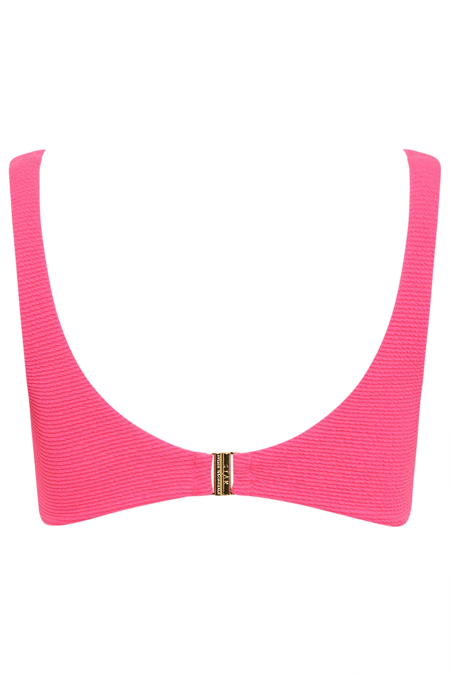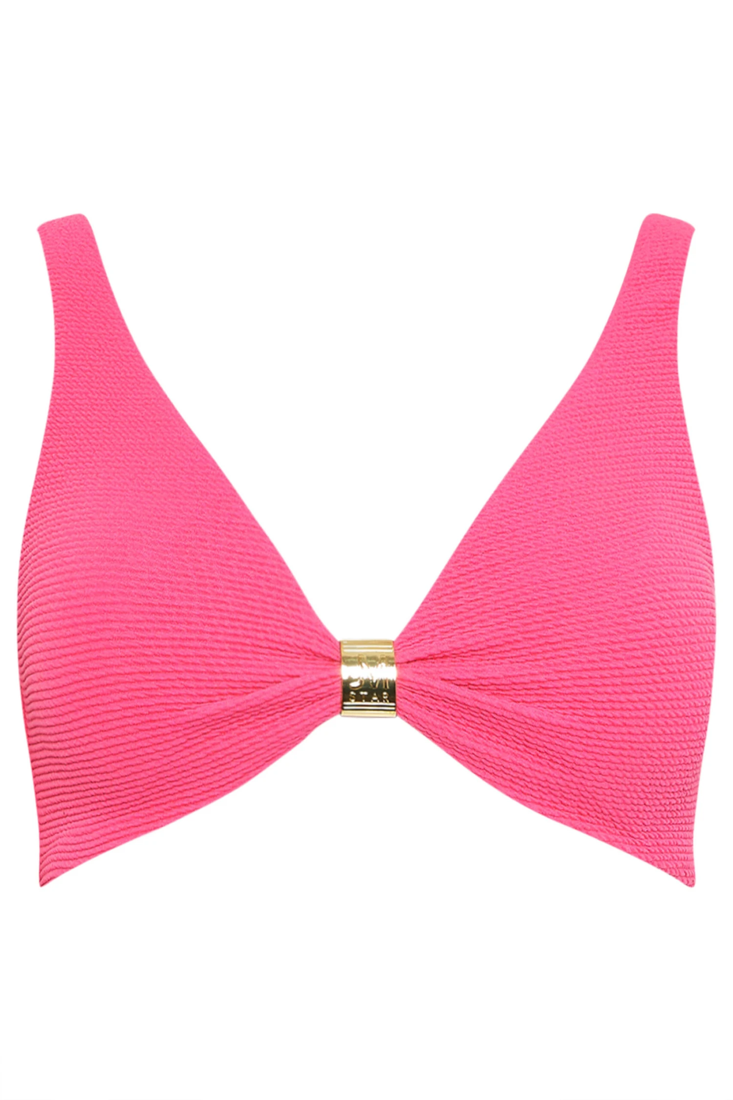 Elevate your swimwear collection this summer with our textured bikini top. Crafted from a soft stretch fabric, it features a clasp back fastening, branded metal trims, removable bust cups, and is fully lined. Style with the matching bikini bottoms for an effortless poolside look you can rely on.