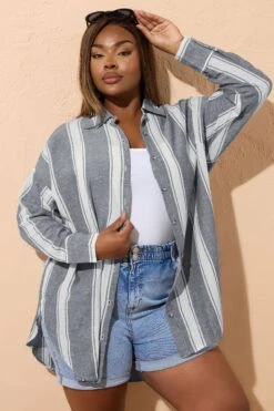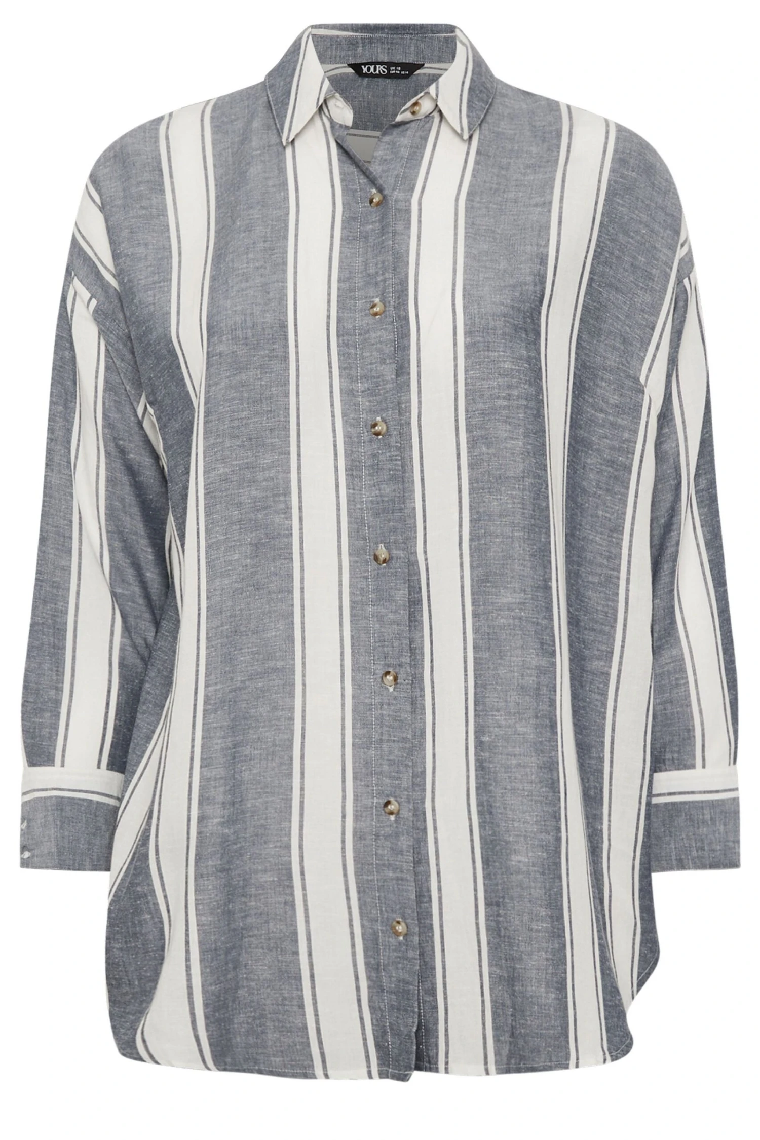Faites le plein de pièces essentielles de saison avec notre chemisier en lin bleu marine délavé à rayures.