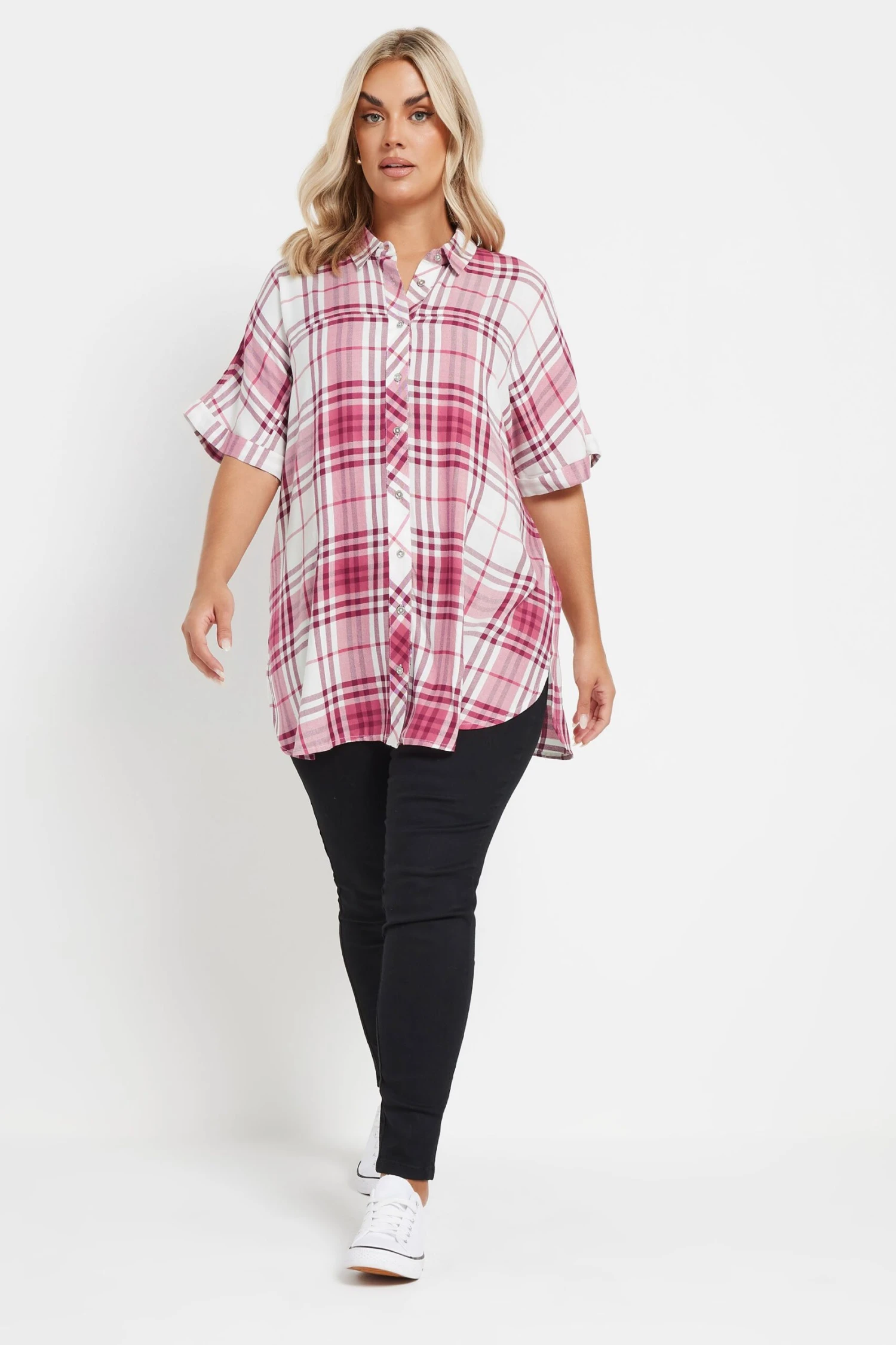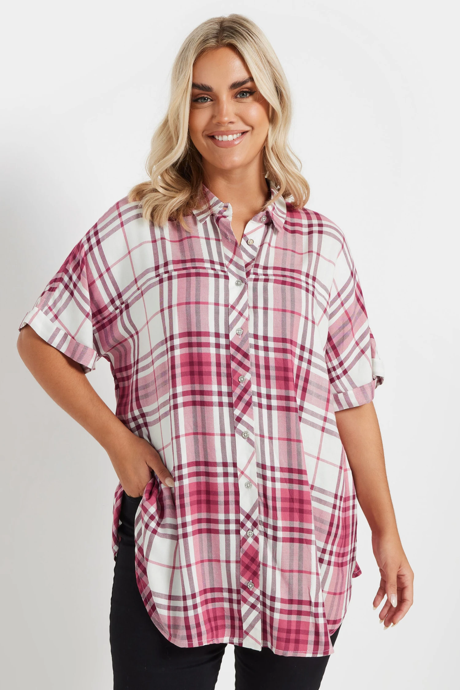 Complétez vos tenues de saison avec notre chemisier rose et blanc à carreaux ourlet arrondi. Pratique et confortable, vous pourrez le porter en plusieurs styles au fil des saisons.