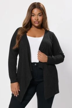 Style cascadeManches longuesModèle ouvertFabriqué en jersey côtelé96 % polyester, 4 % élasthanneLongueur à partir de (environ) : 91 cm/35,8″Lavable en machineMade In ChineLe mannequin mesure 5′ 8.5″/ 174cm et porte du UK 18/EU 46
