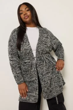 Conception en tricot torsadéDétail de ceintureManches longuesFabriqué à partir d’un tissu tricoté doux100 % acryliqueLongueur à partir de (environ) : 96 cm/37,7″Lavable en machineMade In BangladeshLe mannequin mesure 5′ 8.5″/ 174cm et porte du UK 18/EU 46