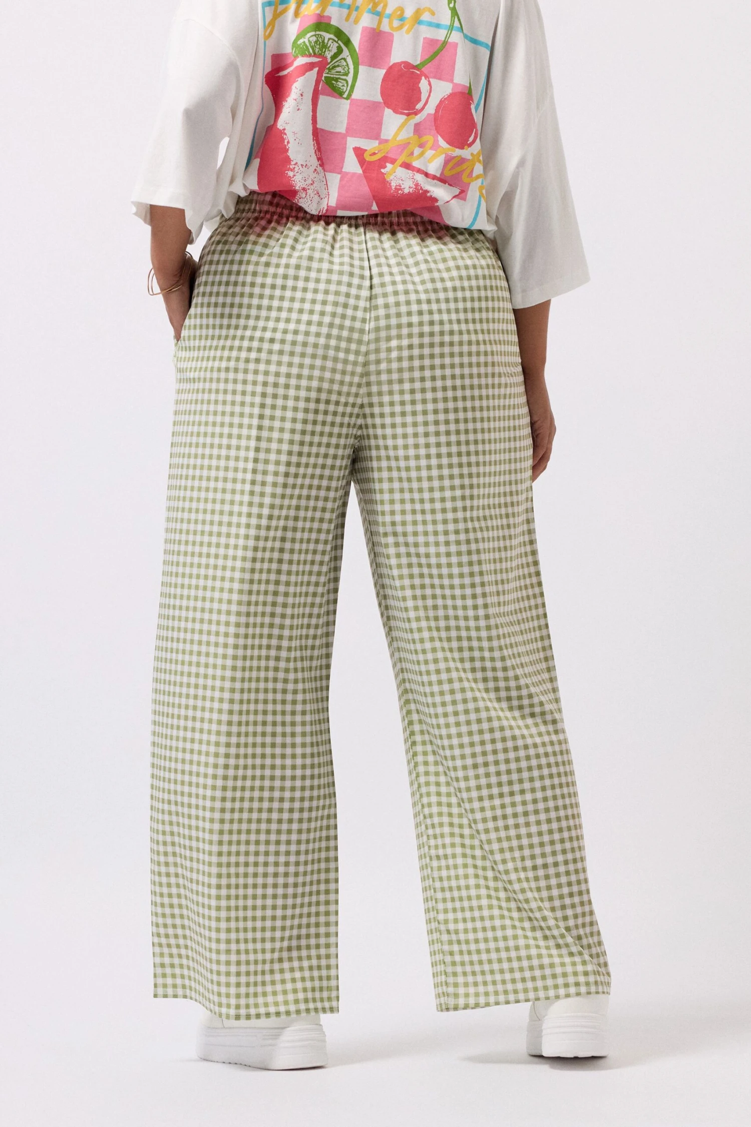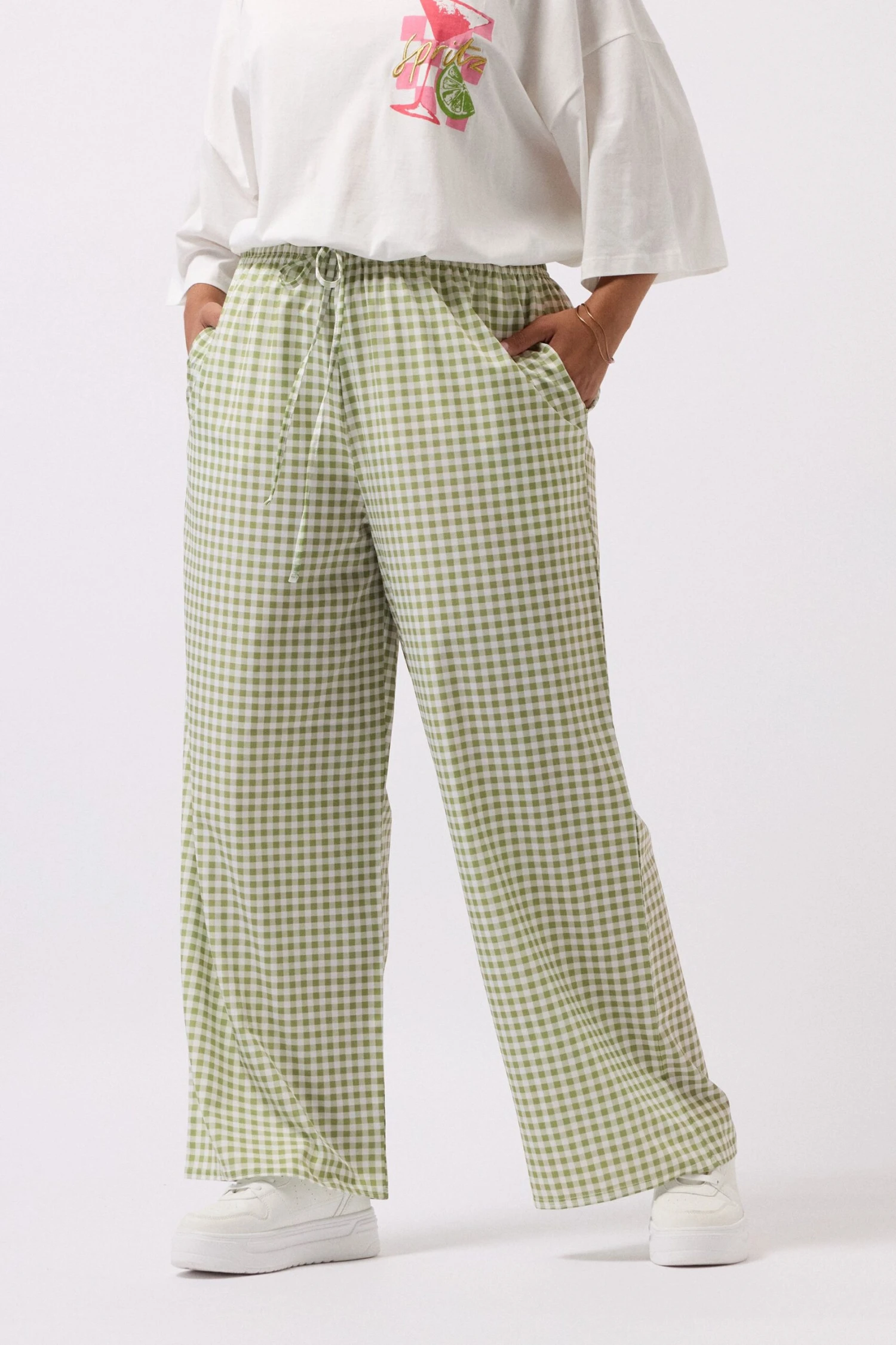 Ce nouveau pantalon de la collection limitée est idéal à enfiler et à emporter cet été. Confectionné dans un tissu tissé confortable, il présente un imprimé vichy et une ceinture élastique à nouer. Portez-le avec un t-shirt uni et des sandales pour un look décontracté, confortable et facile à porter.