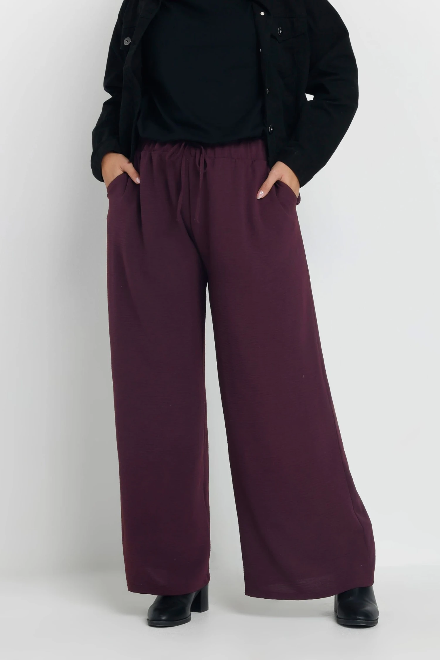 Modèle jambe largeCeinture élastiquéeFermeture à nouer à la tailleDeux poches latéralesFabriqué en jersey confortable93 % polyester, 7 % élasthanneDimensions des coutures intérieures (environ) : 71 cmLavable en machineMade In TurquieLe mannequin mesure 5′ 9.5″ / 176.53 cm et porte du UK 16/EU 44