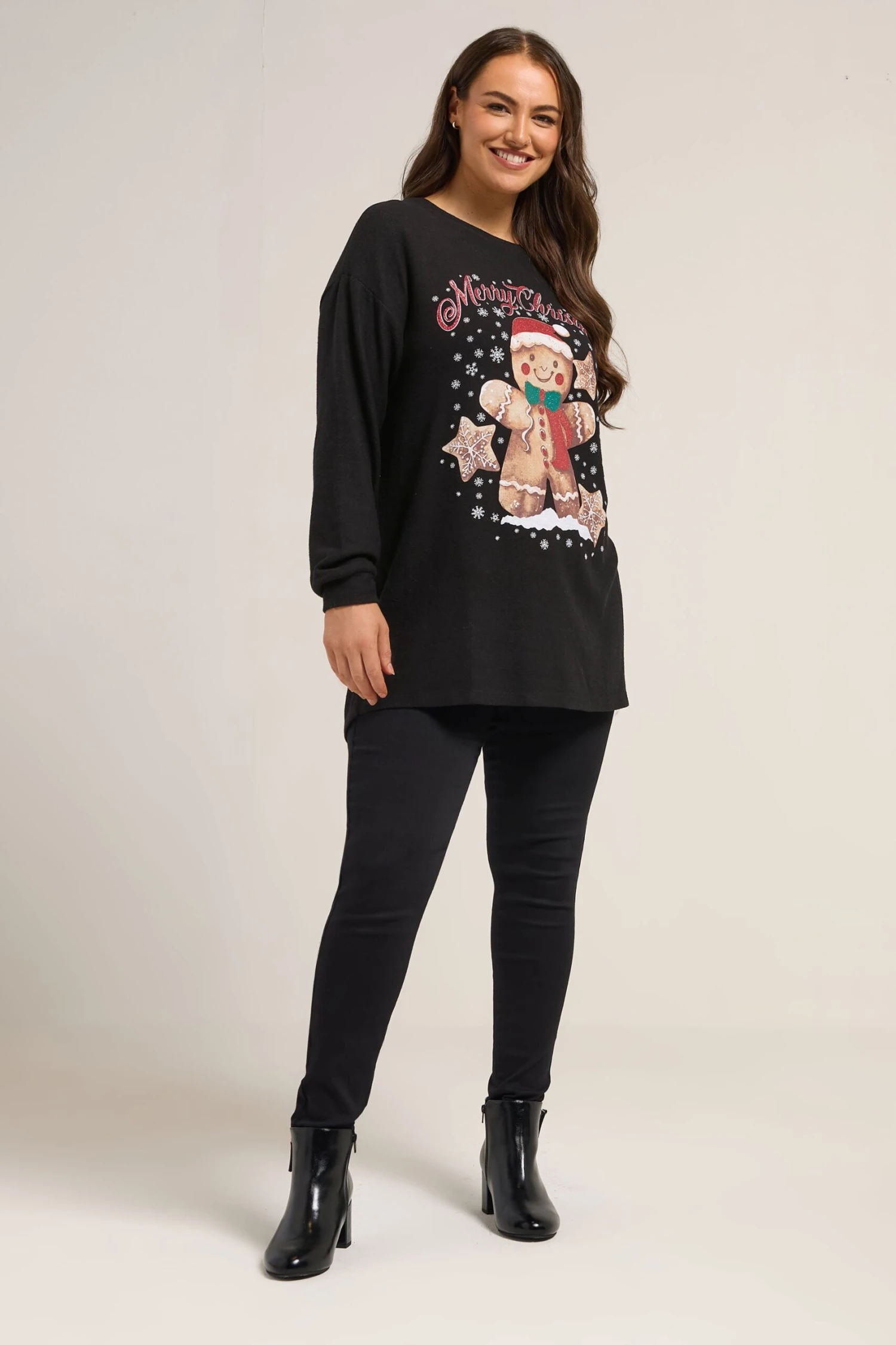 Rehaussez votre garde-robe de Noël avec ce pull fantaisie indispensable. Confectionné en jersey doux, il arbore le slogan « Joyeux Noël » avec un imprimé pain d’épices et des paillettes. À porter avec un legging et des baskets pour un look que vous voudrez porter encore et encore en décembre.