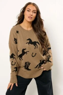 Motif westernManches longuesEncolure ras du couFabriqué dans un tissu tricoté confortable100 % acryliqueLongueur à partir de (environ) : 75 cm/29,5″Lavable en machineMade In Grande BretagneLe mannequin mesure 5’10.5″/178cm et porte du UK 16/EU 44