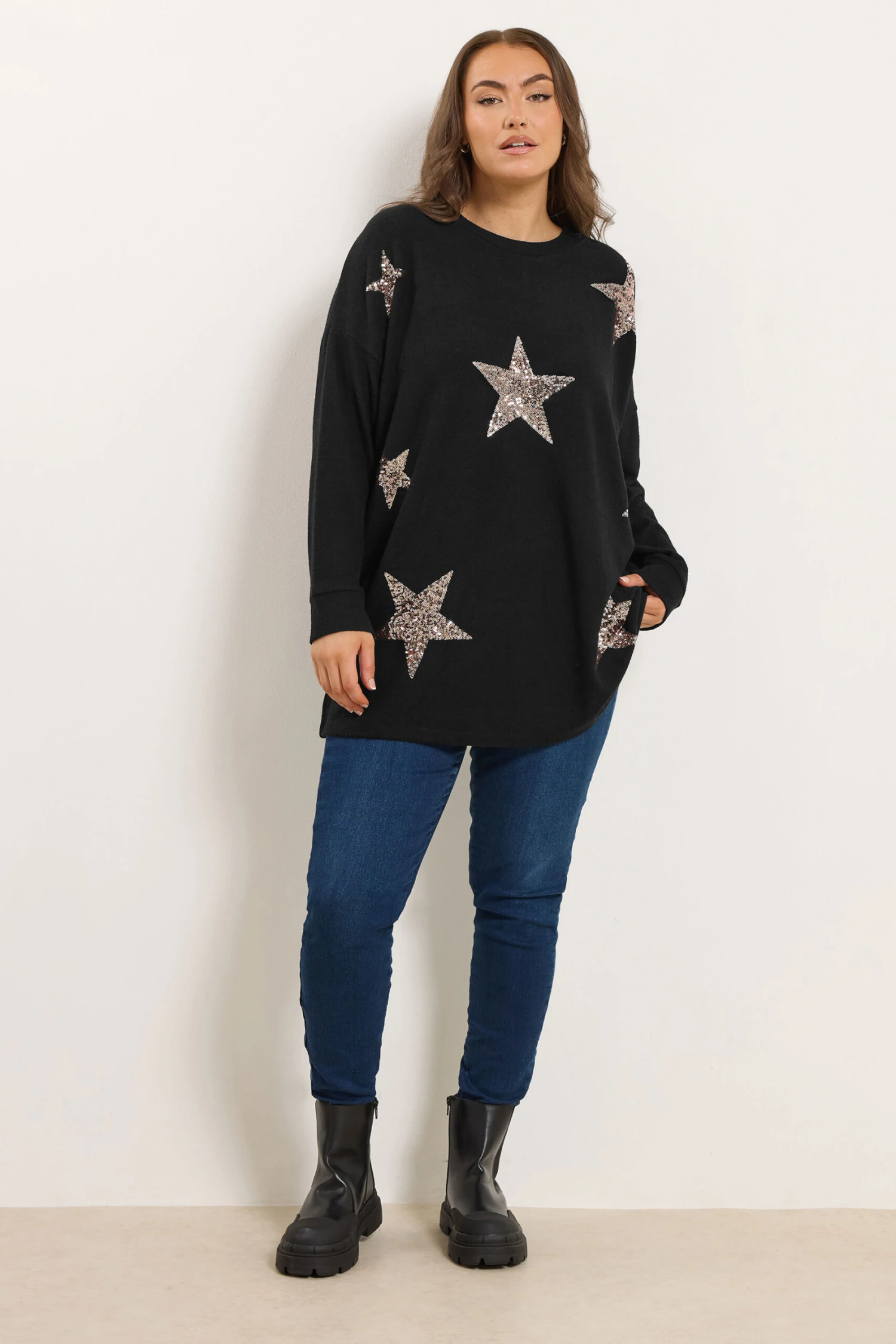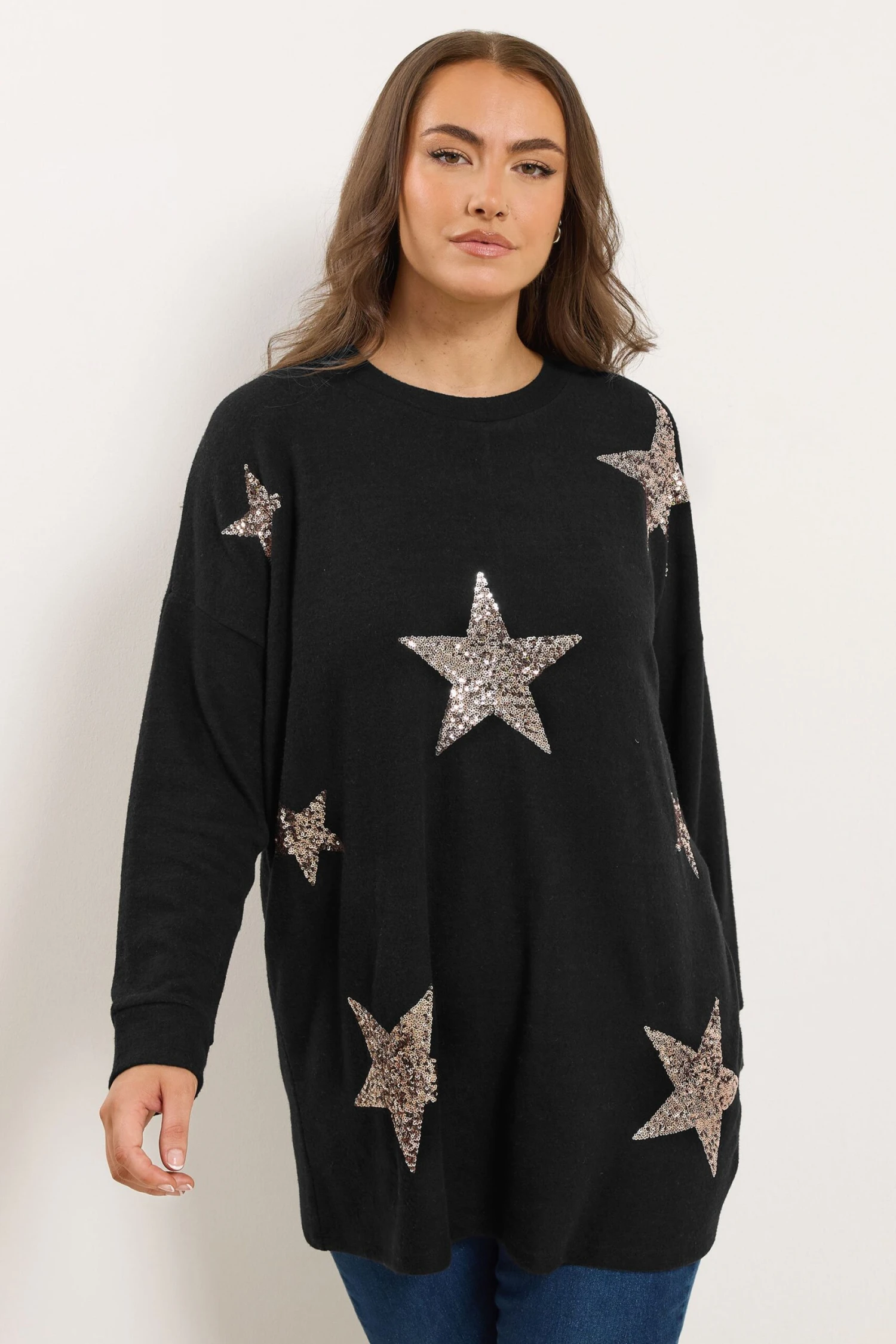 Ornements à paillettesMotif étoileManches longuesEncolure ras du couFabriqué dans un tissu ultra doux63 % polyester, 34 % viscose, 3 % élasthanneLongueur à partir de (environ) : 83 cm/32,6″Lavable en machineMade In TurquieLe mannequin mesure 5’10.5″/178cm et porte du UK 16/EU 44