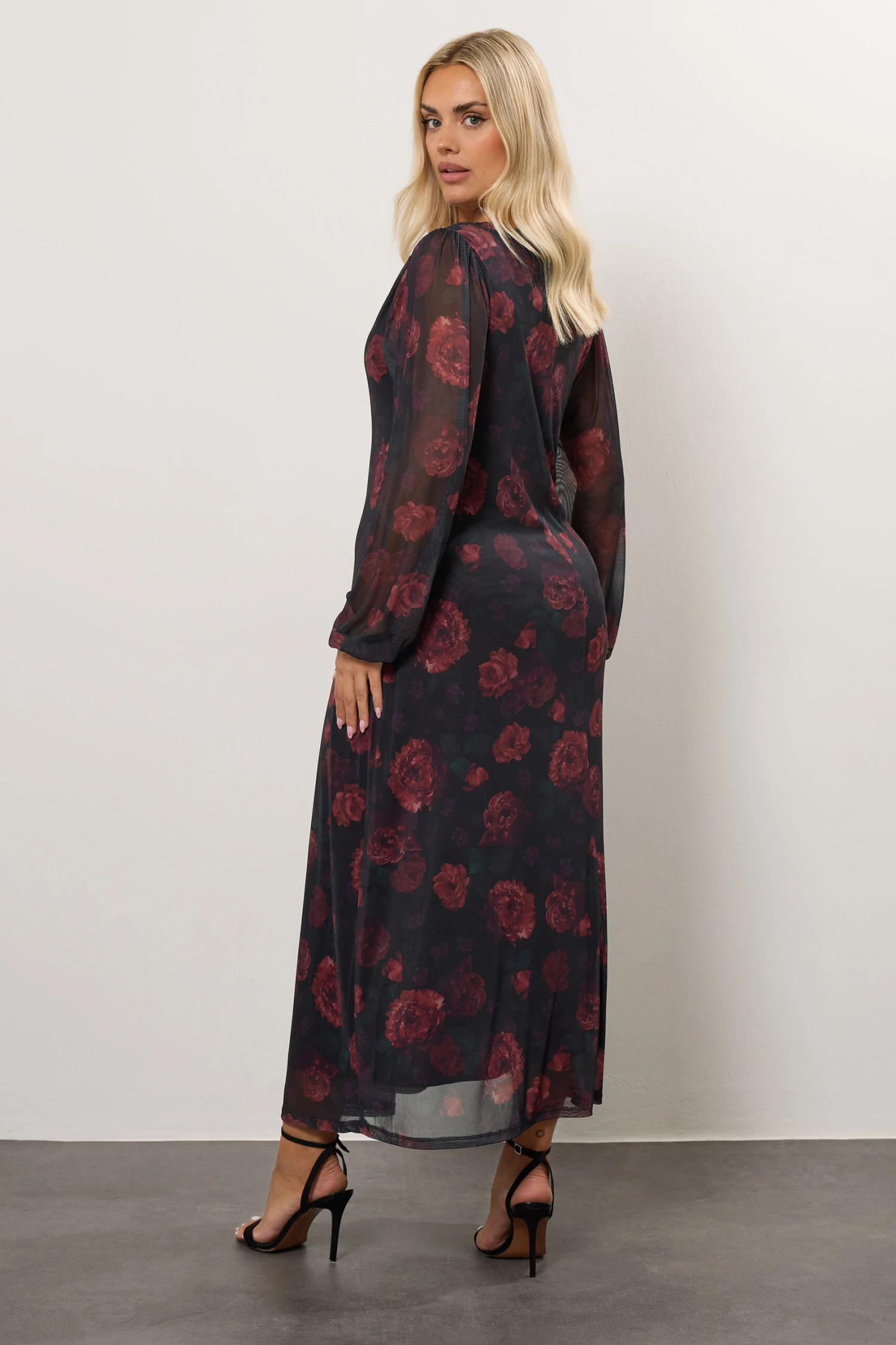 Soyez élégante sans effort dans cette robe longue incontournable. Confectionnée en jersey confortable, elle présente un imprimé floral avec une superposition en maille et de longues manches ballon. Associez-la simplement à des talons pour un look parfait pour votre prochaine occasion sociale.