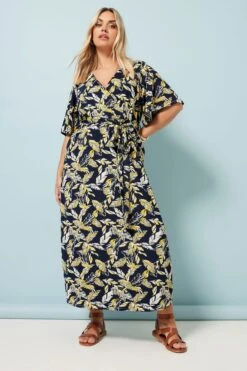 Imprimé feuillesStyle portefeuilleLongueur MidaxiManches courtesCeinture à nouer à la tailleFabriqué en jersey doux95 % polyester, 5 % élasthanneLongueur à partir de (environ) : 127 cm/50″Lavable en machineMade In Turquie