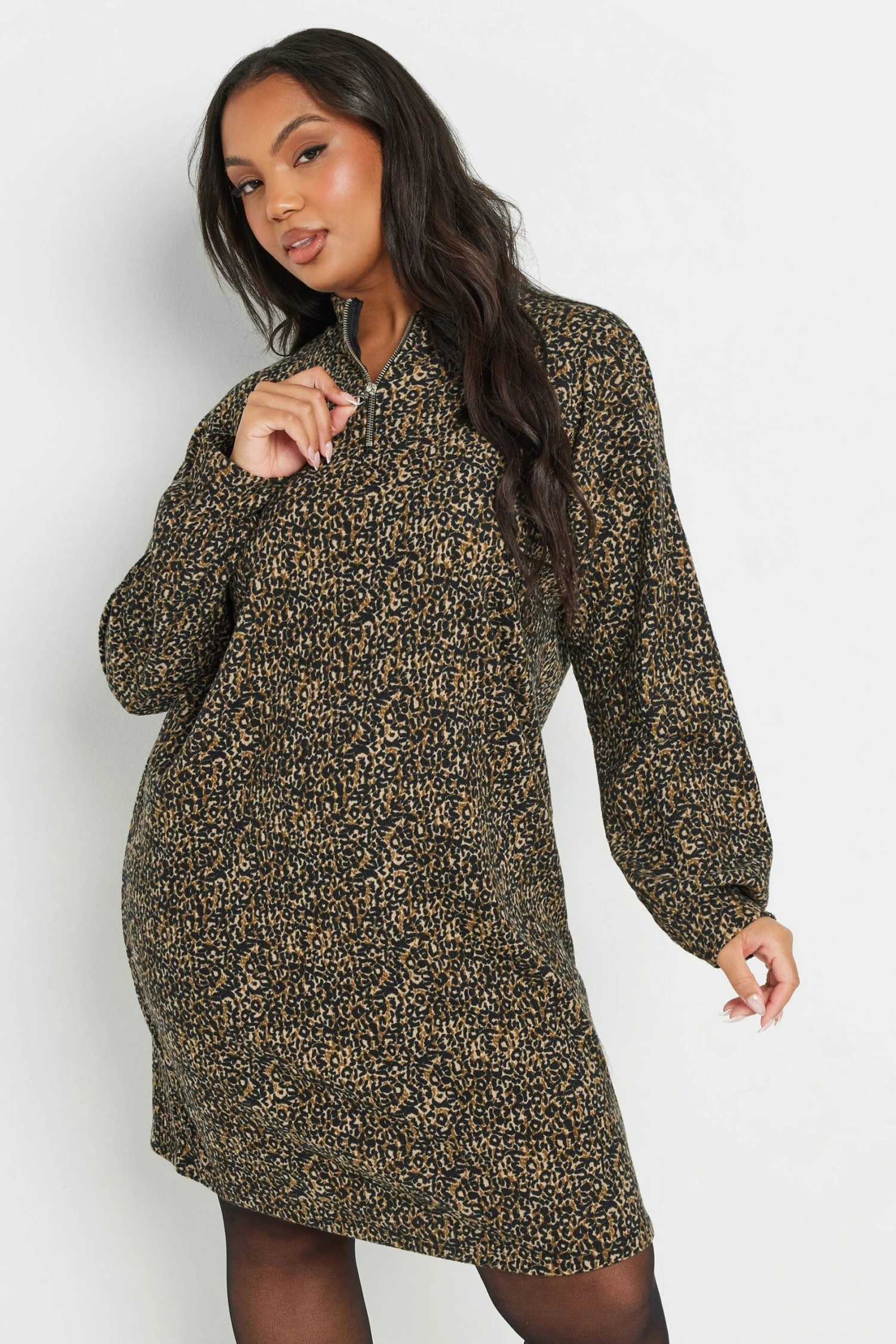Imprimé léopardEncolure zippéeManches longuesMotif côteléLongueur miniFabriqué dans un tissu doux et confortable54 % viscose, 43 % polyester, 3 % élasthanneLongueur à partir de (environ) : 101 cm/39,7″Lavable en machineMade In TurquieLe mannequin mesure 5’7″/173 cm et porte du UK 16 / EU 44