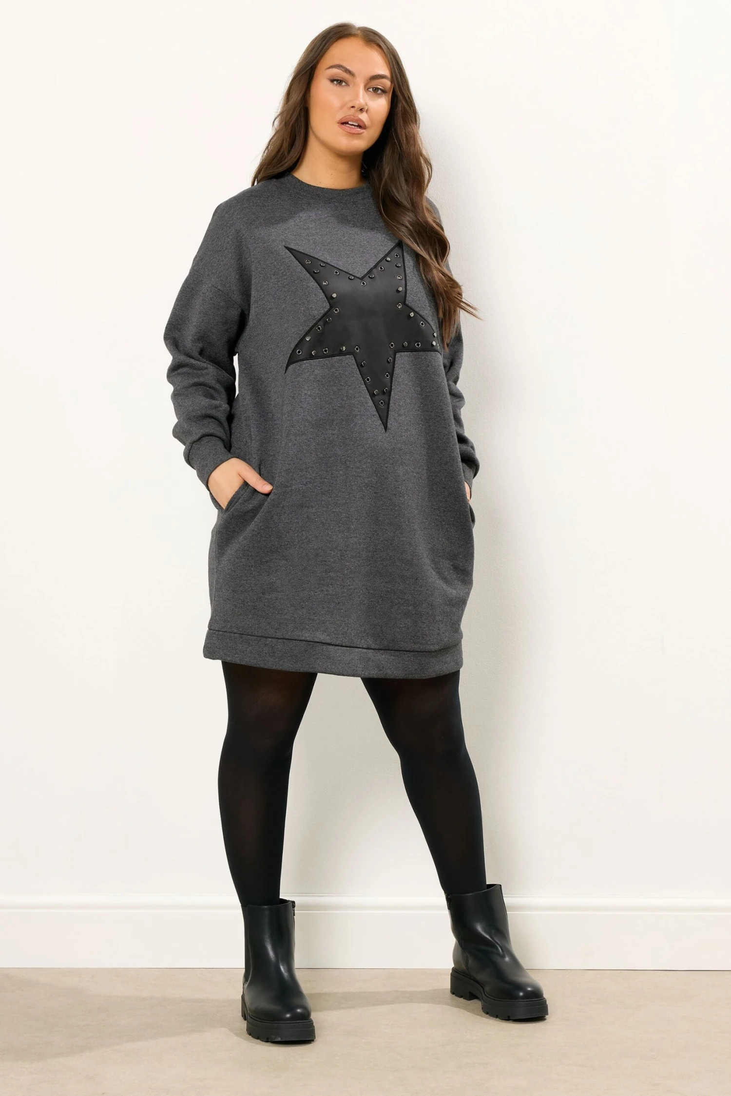 Imprimé étoilesŒilletsDeux poches latéralesManches longuesEncolure ras du couLongueur miniFabriqué en jersey doux65 % polyester, 35 % cotonLavable en machineMade In TurquieLe mannequin mesure 5’10.5″/178cm et porte du UK 16/EU 44