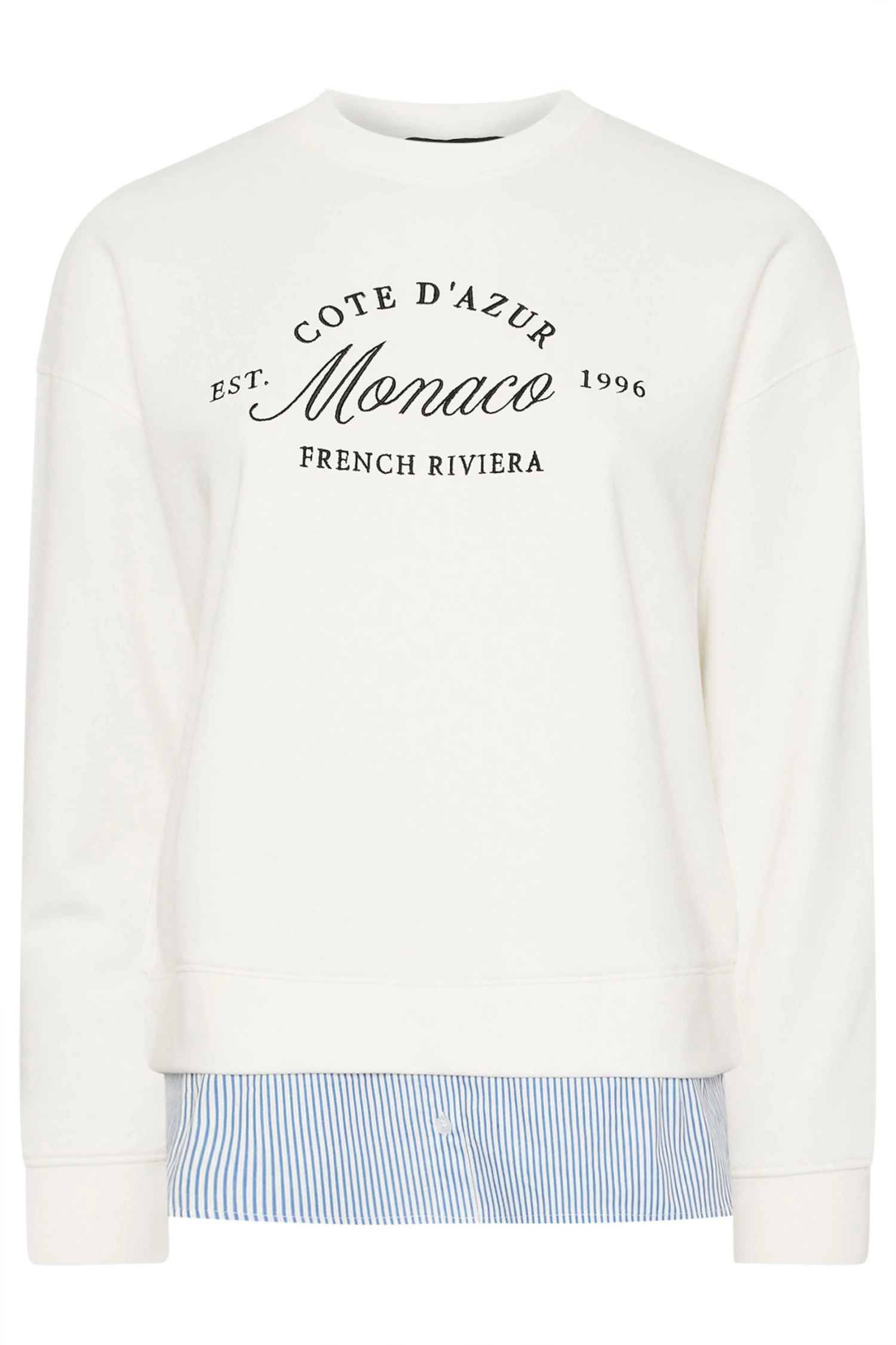 Ce nouveau sweat-shirt deviendra la pièce incontournable de votre garde-robe cette saison ! Confectionné en jersey doux, il arbore un slogan « Monaco » brodé, des manches longues, un détail chemise 2 en 1 et un col ras du cou. Associez-le à un jean et des baskets pour un look de week-end tendance que vous adorerez !