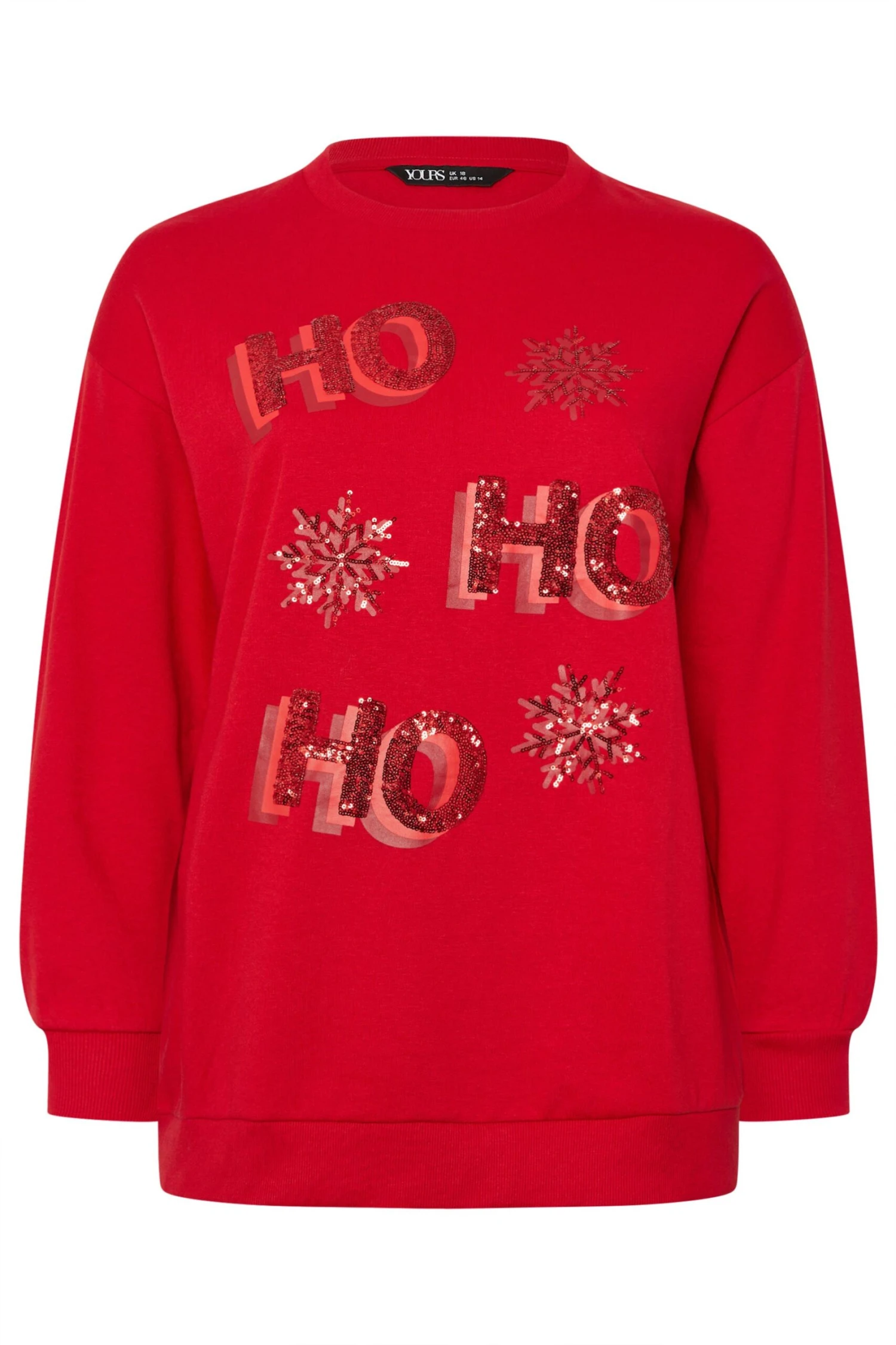 Préparez-vous pour les fêtes avec ce nouveau sweat-shirt. Confectionné en jersey doux, il présente un motif flocon de neige, des manches longues et un imprimé « Ho Ho Ho ». Portez-le avec un jean et des bottes pour un look cosy et décontracté, parfait pour tous vos projets de saison.