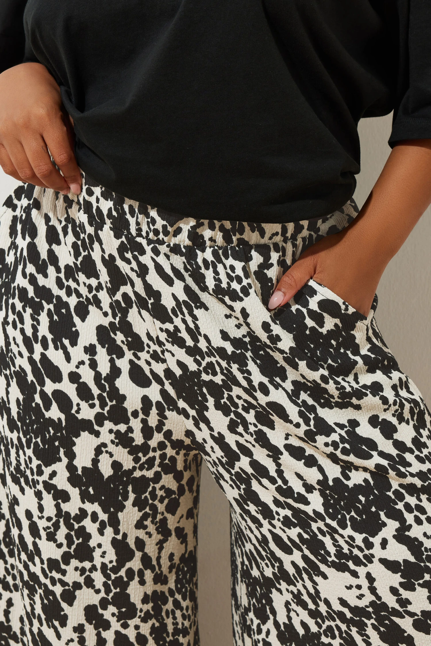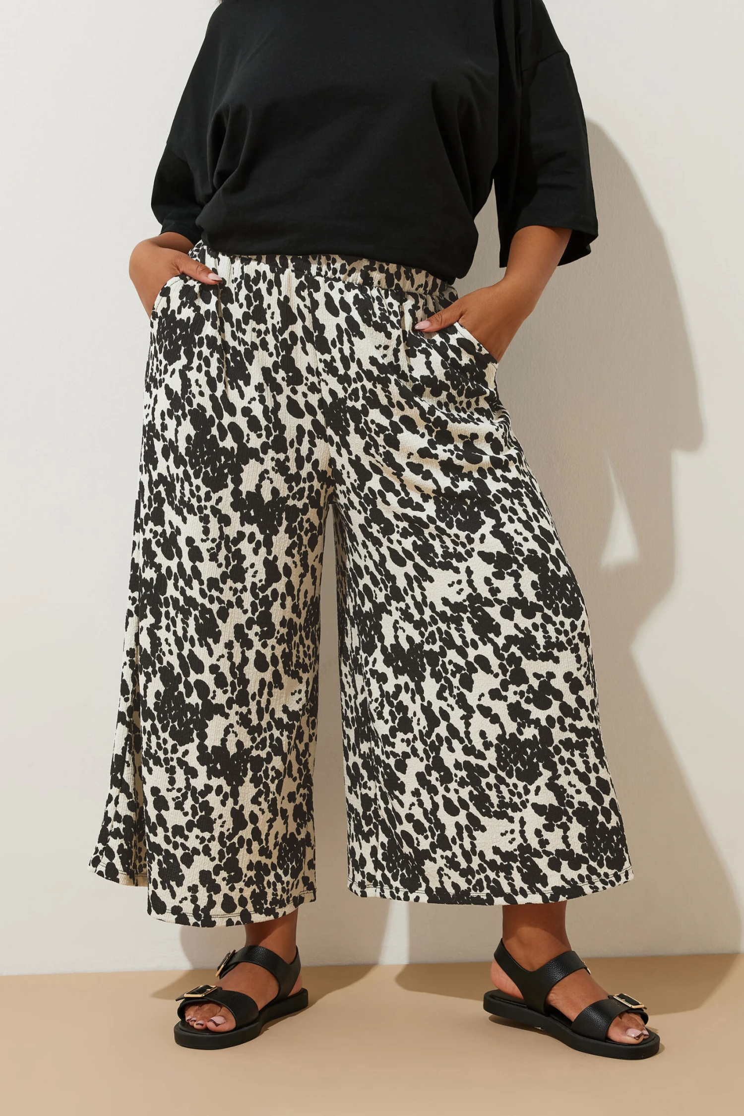 Complétez vos tenues de saison avec notre pantalon jupe-culotte blanc imprimé vache.