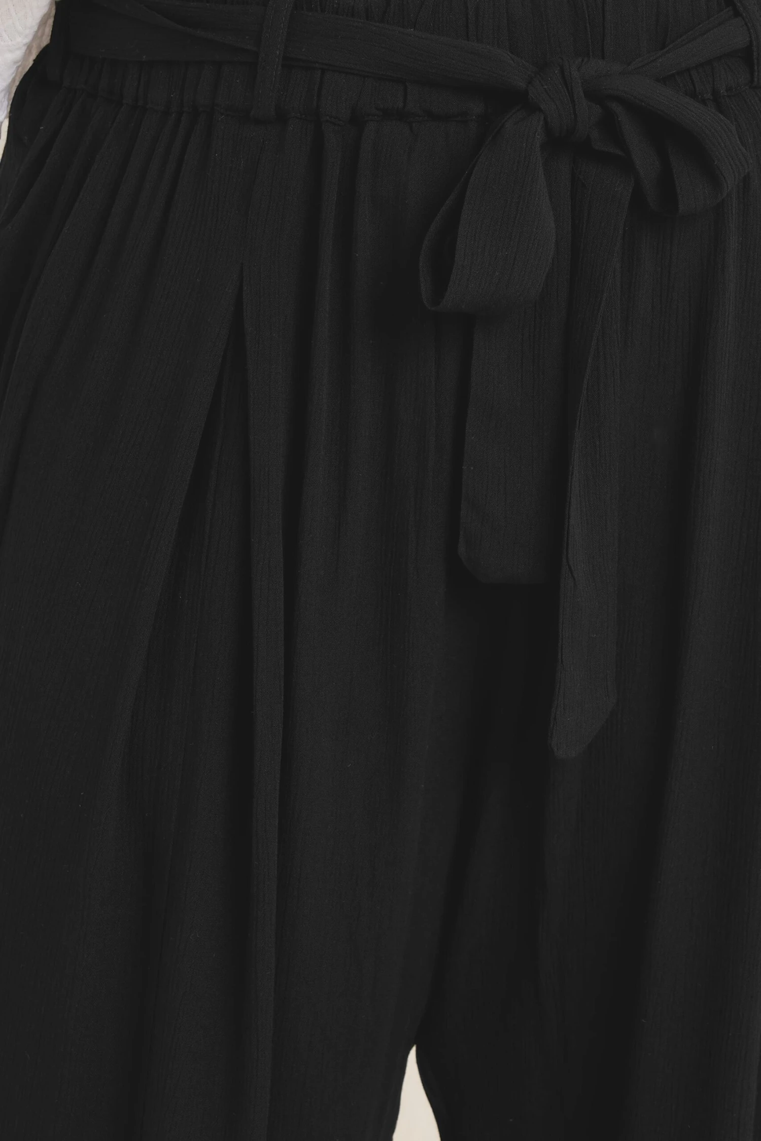 Complétez vos tenues de saison avec notre pantalon noir plissé wide leg à poches. Confortable et léger, vous allez l’adorer.