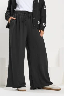 Soyez classe et confortable cette saison avec notre pantalon noir wide leg en sergé. Féminin et raffiné, vous allez l’adorer.