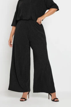 Craquez pour notre ravissant pantalon noir wide leg métallique nervuré pour vos soirées de saison.