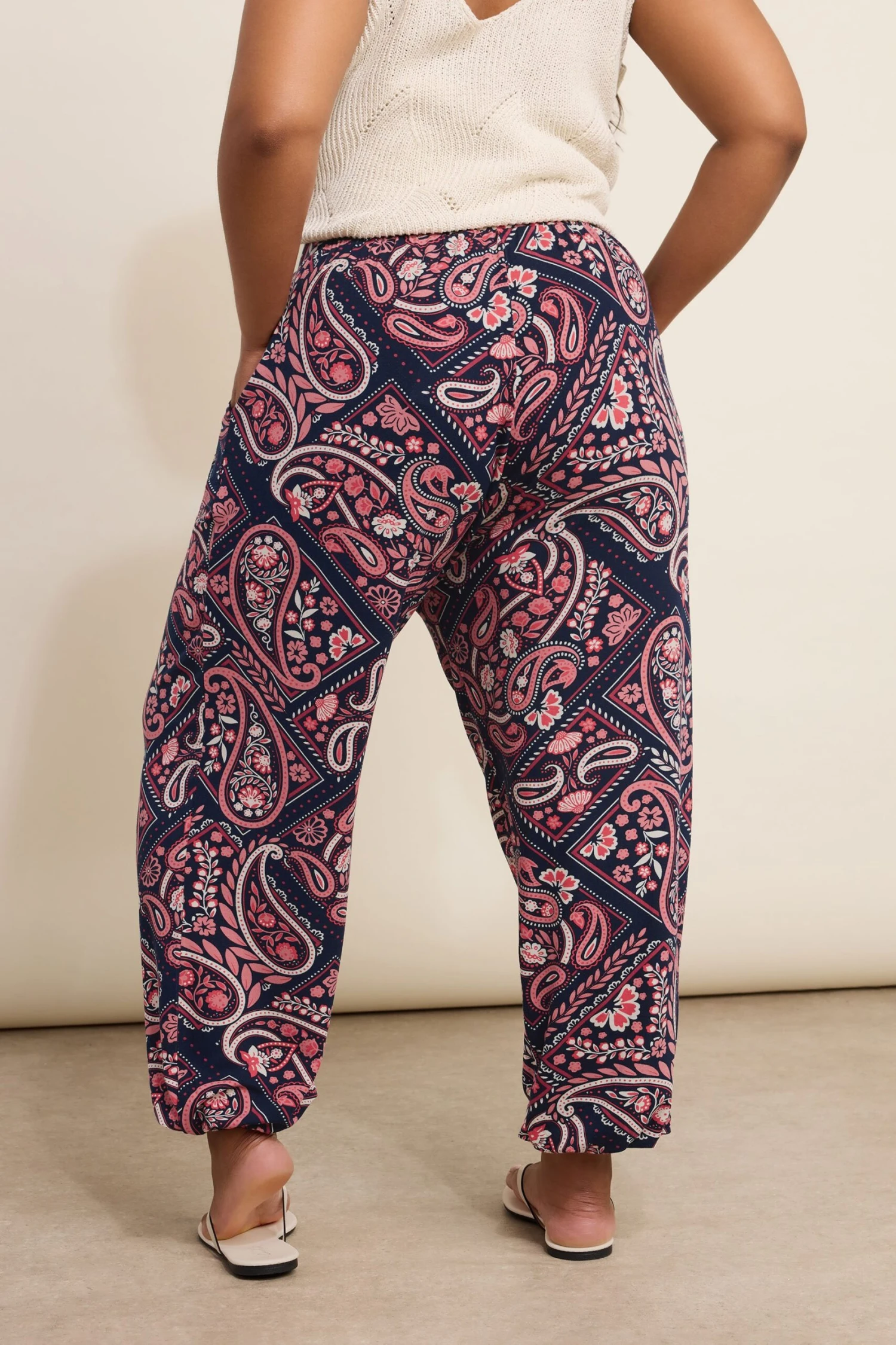 Craquez pour notre pantalon sarouel bleu marine et rose paisley. Confortable et tendance, vous allez l’adorer cette saison et la prochaine.