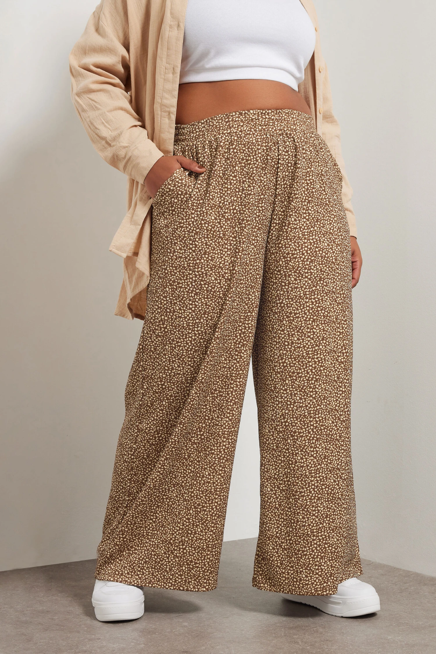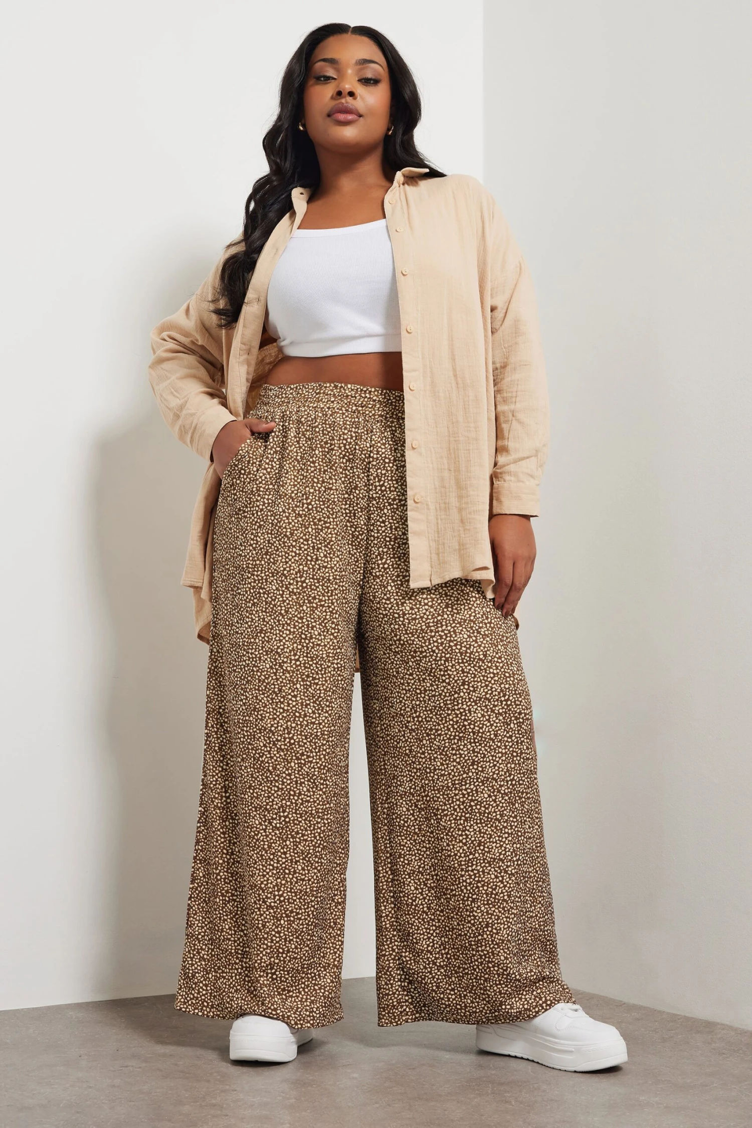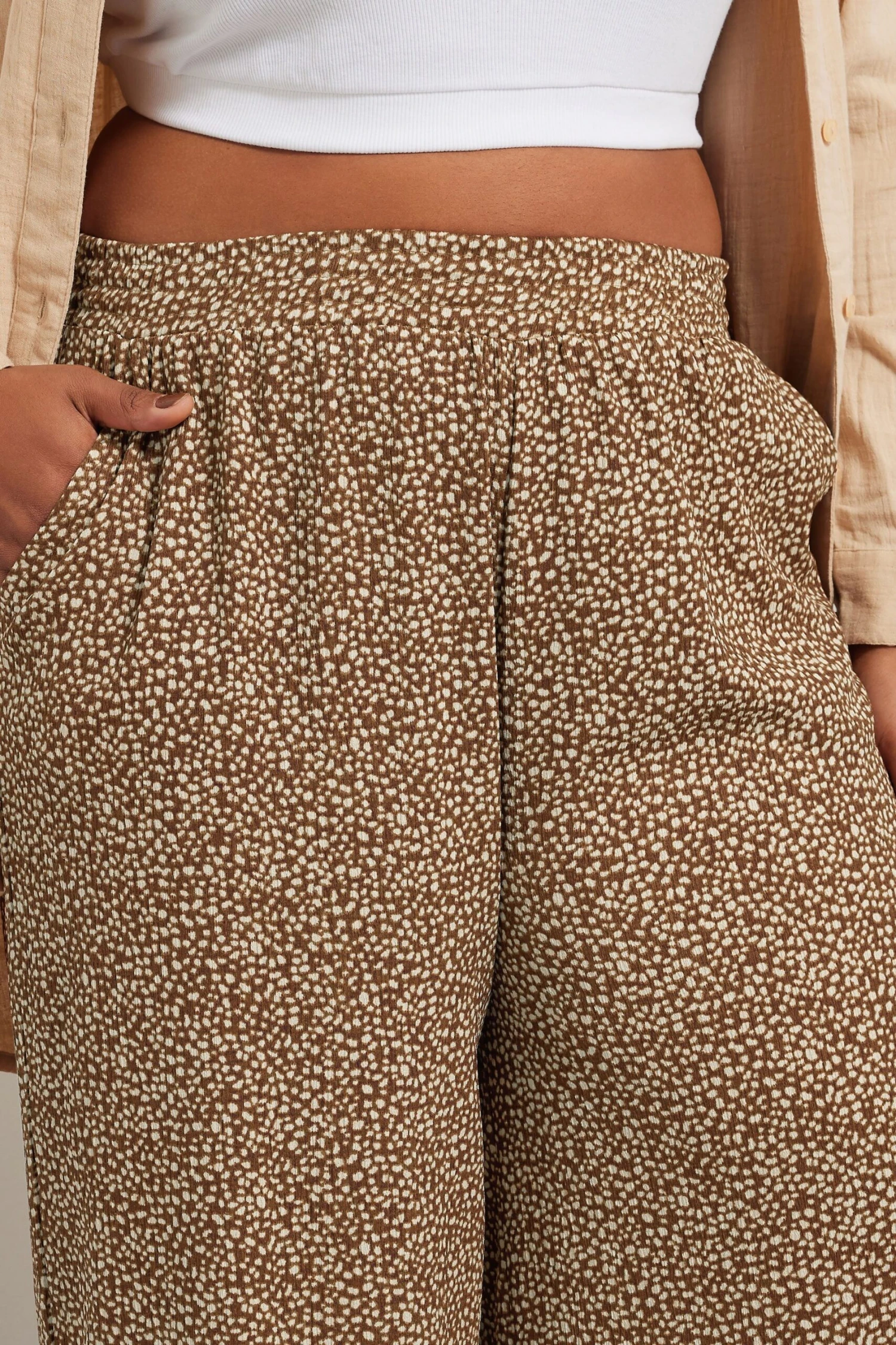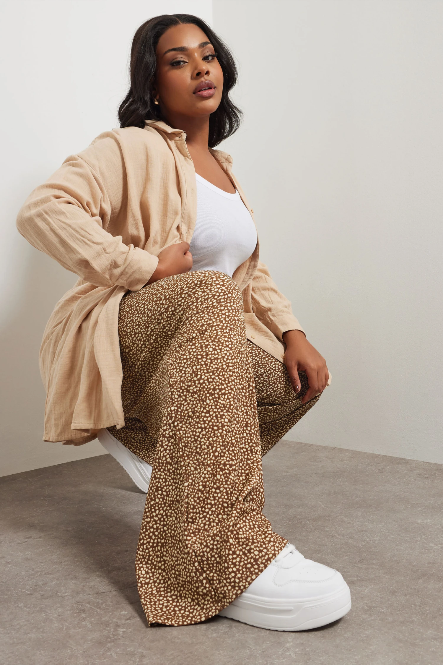 Craquez pour notre pantalon wide leg marron abstrait texturé. Féminin, classe et léger, vous allez adorer le porter en plusieurs styles.