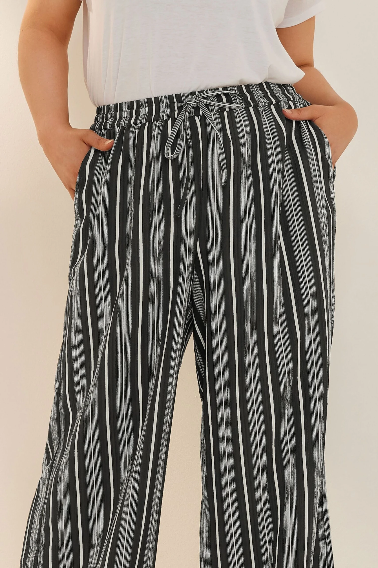 Craquez pour notre pantalon wide leg noir à rayures texturé. Féminin, tendance et confortable, vous allez l’adorer.